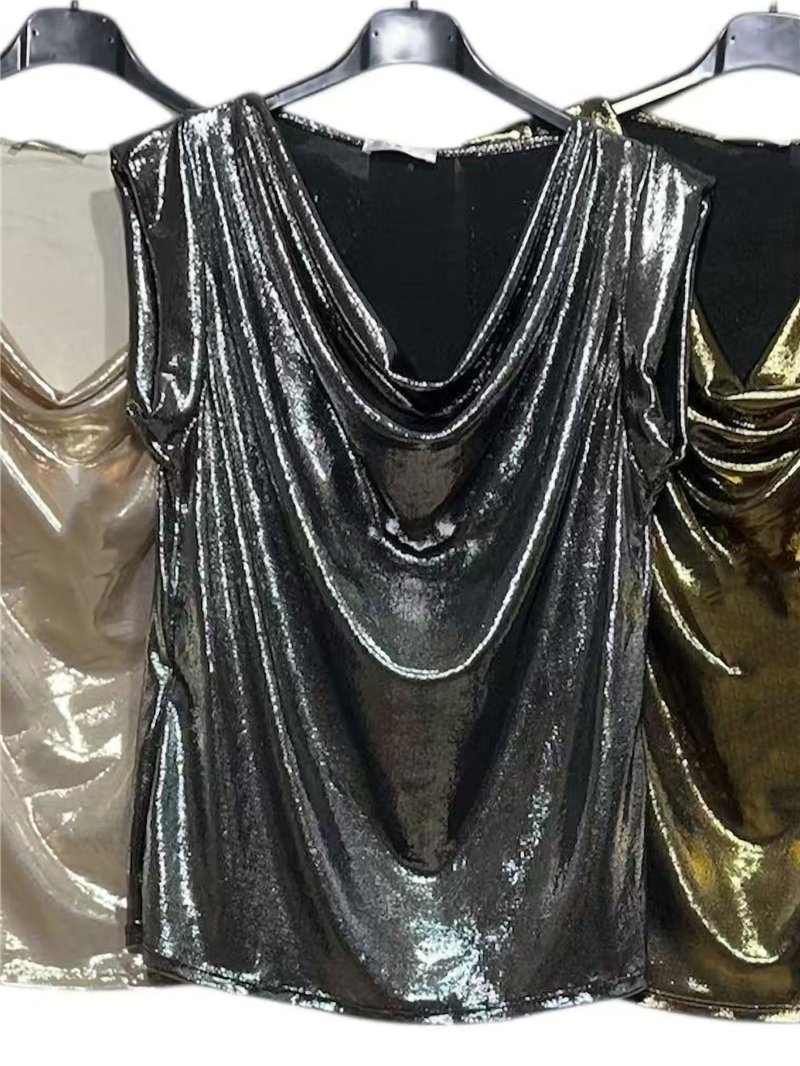 Detalles de top fiesta escote drapeado metalizado KR-35322