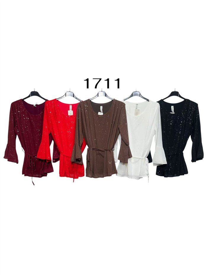 Detalles de blusa fiesta gasa con brillo manga acampanada KR-1711