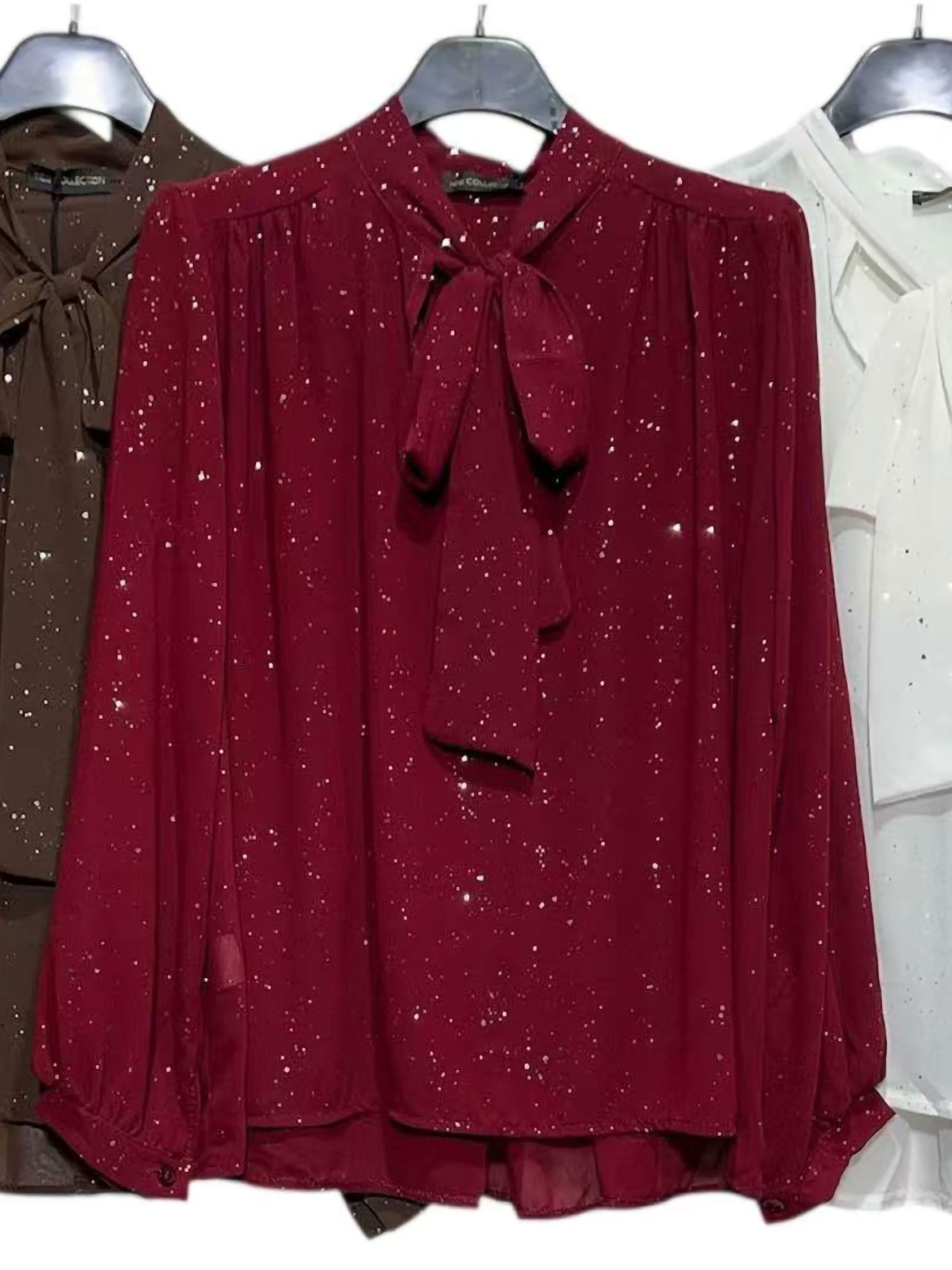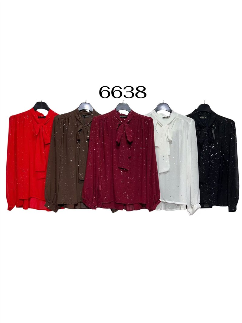 Detalles de blusa fiesta amplia gasa con brillo cuello lazo KR-6638