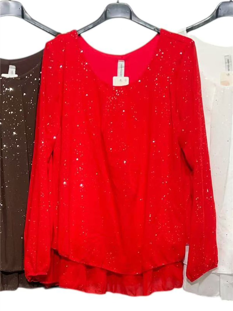 Detalles de blusa fiesta amplia gasa con brillo doble capa KR-9681