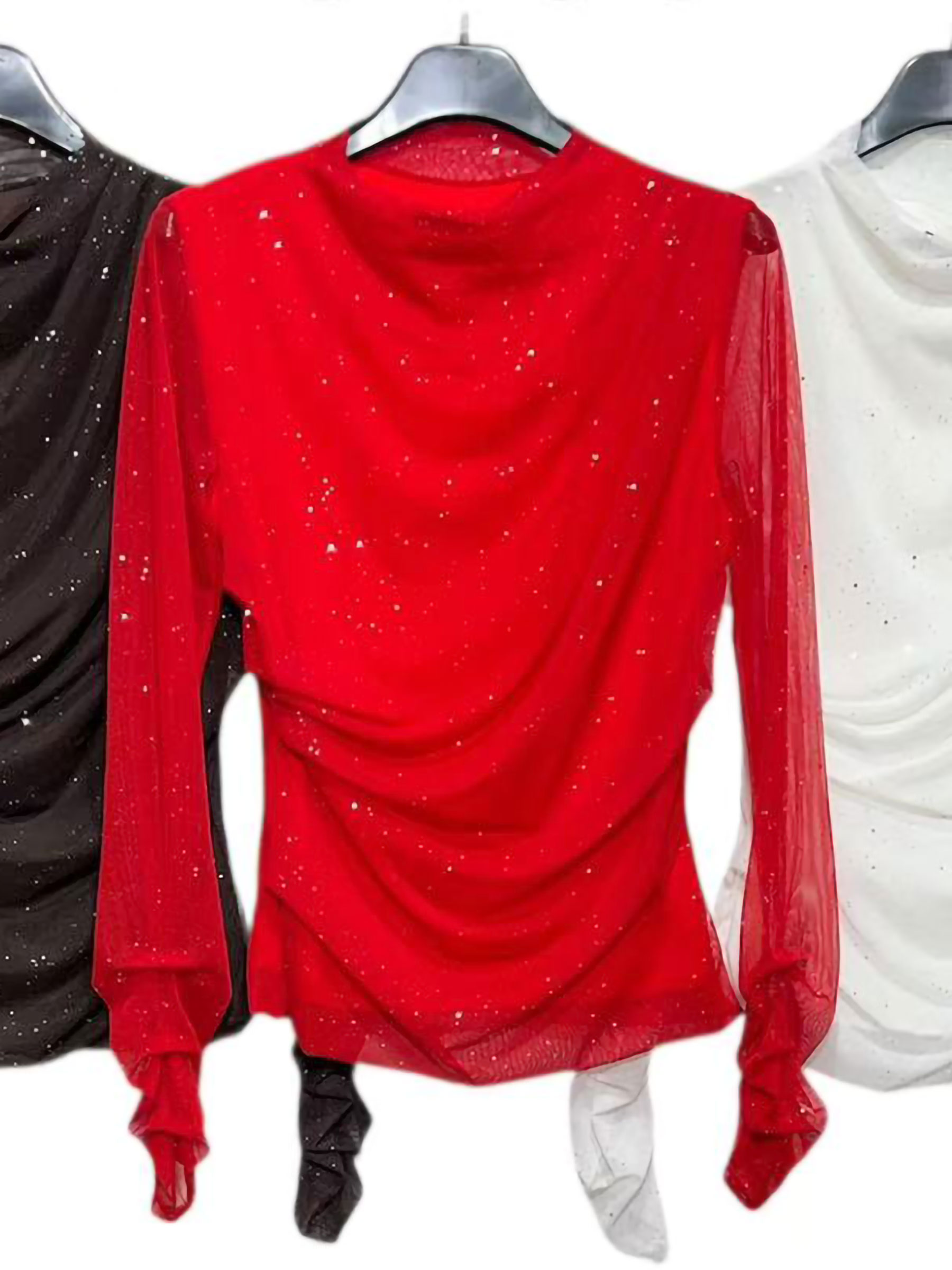 Top fiesta fruncido de tul con brillo Top fiesta fruncido de tul con brillo Top fiesta fruncido de tul con brillo