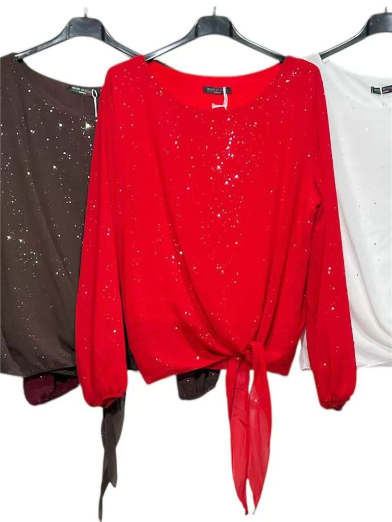 Detalles de blusa fiesta amplia gasa con brillo nudo KR-25189