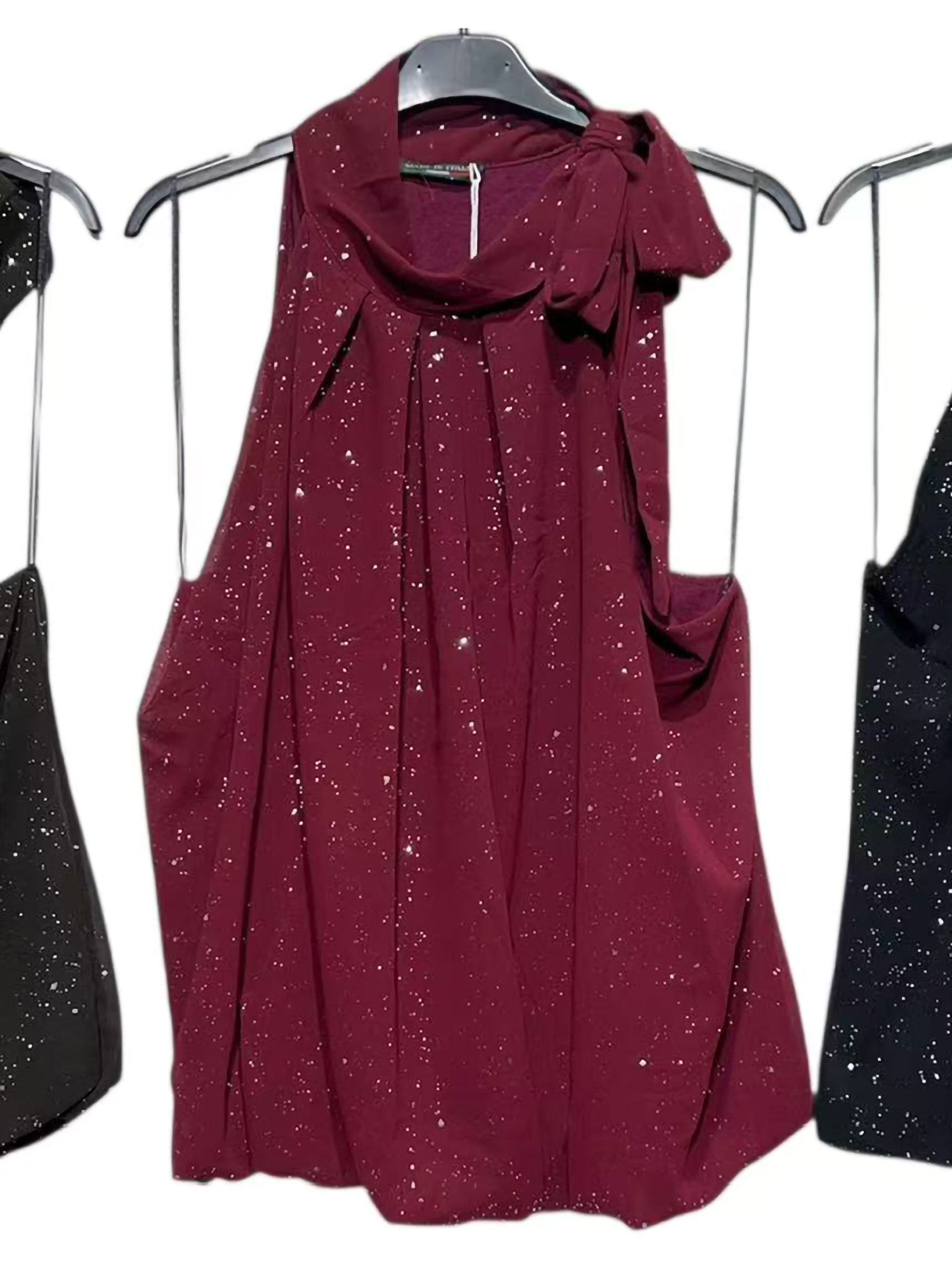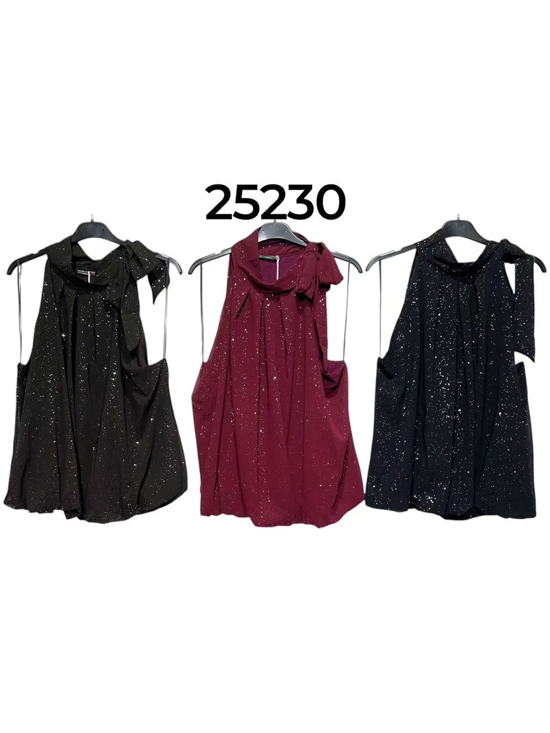 Top fiesta gasa con brillo lazada al cuello Top fiesta gasa con brillo lazada al cuello Top fiesta gasa con brillo lazada al cuello