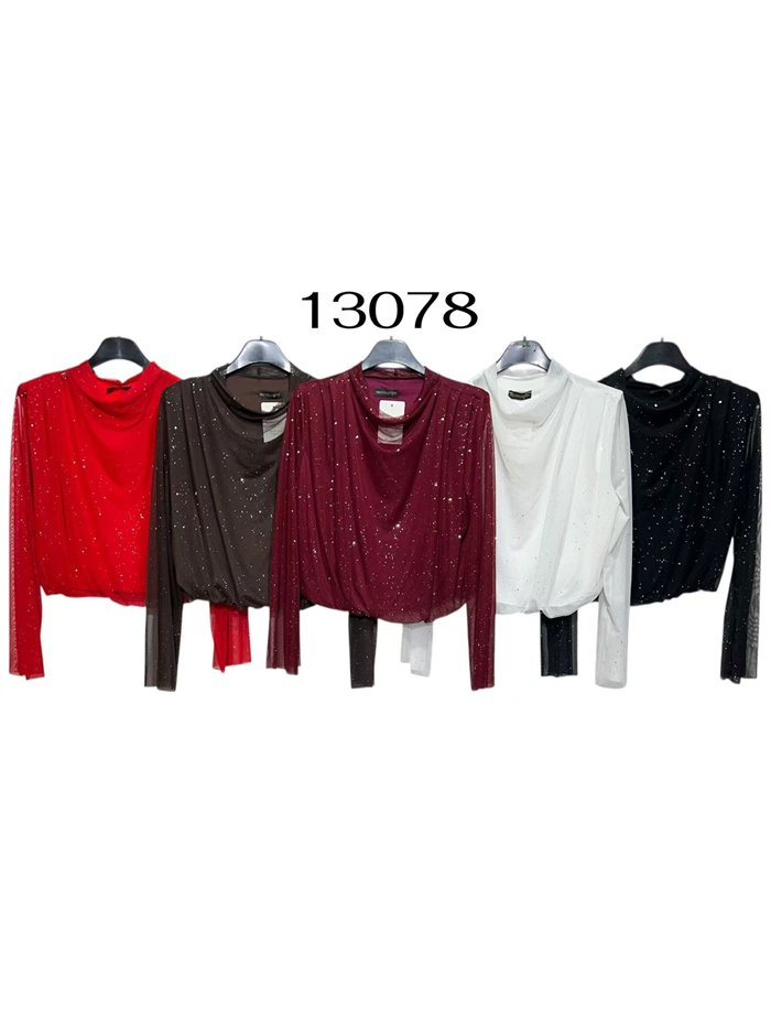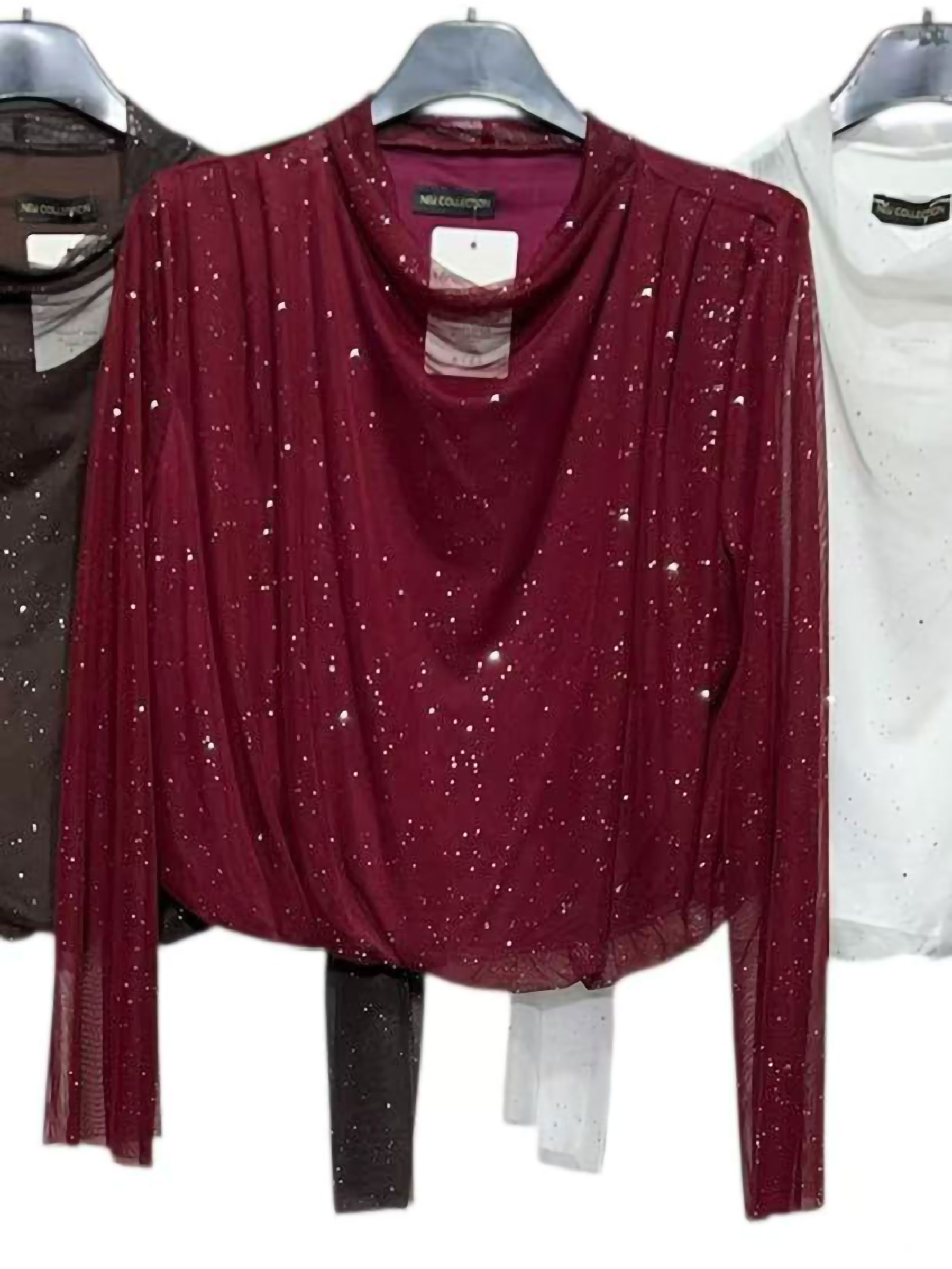 Detalles de blusa fiesta de tul con brillo KR-13078