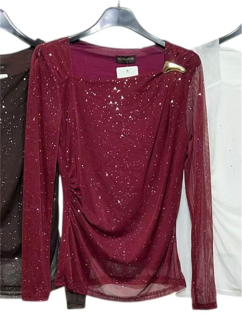 Detalles de blusa fiesta de tul con brillo detalle metálico KR-13350