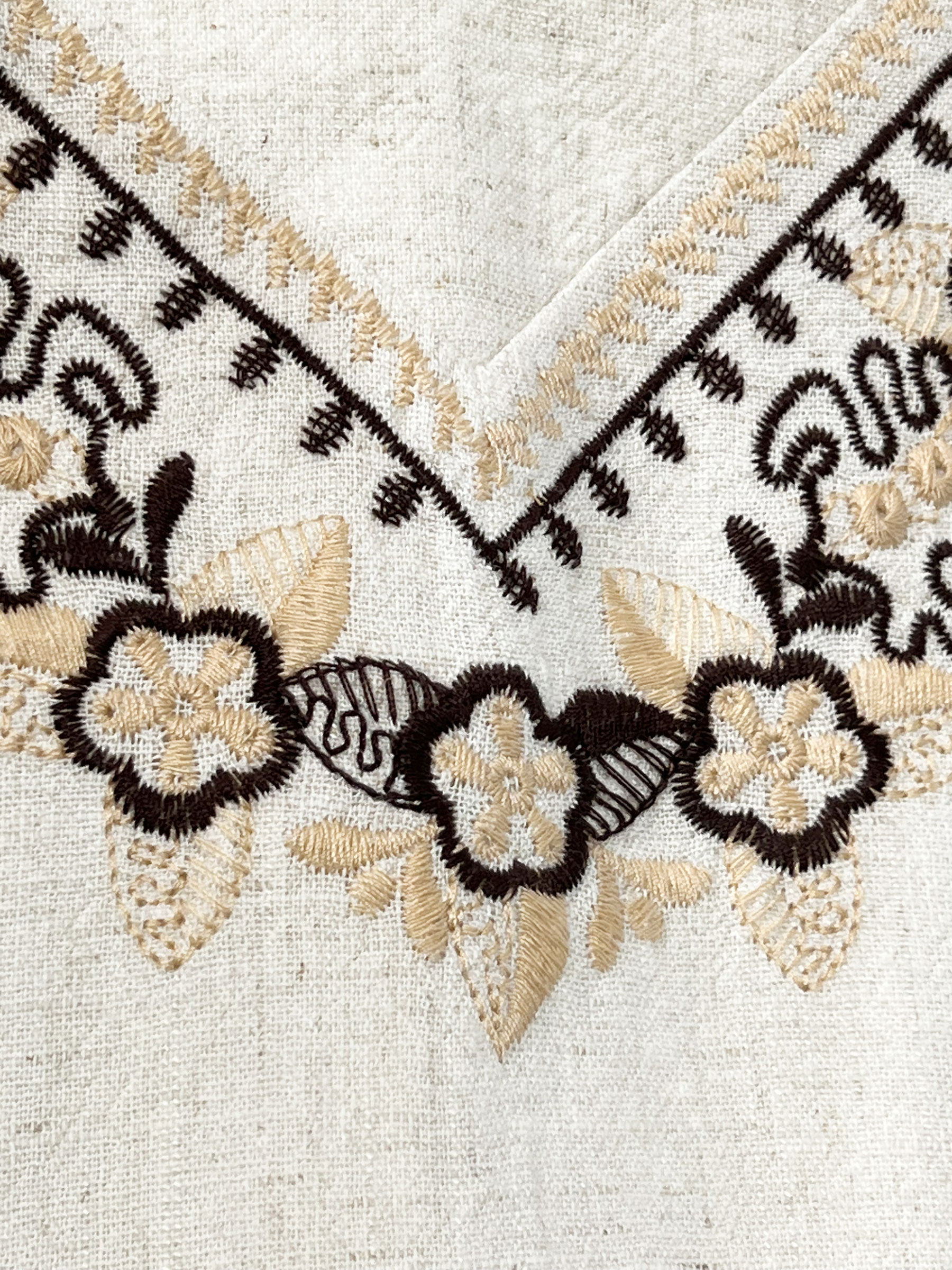 Blusa amplia. Bordado en escote. Cuello pico. Manga corta caída.
