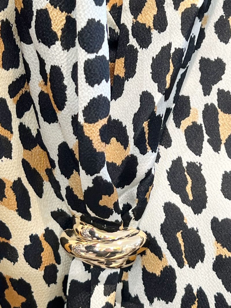 Blusa animal print. Cuello con lazada. Manga larga. Puño camisero.