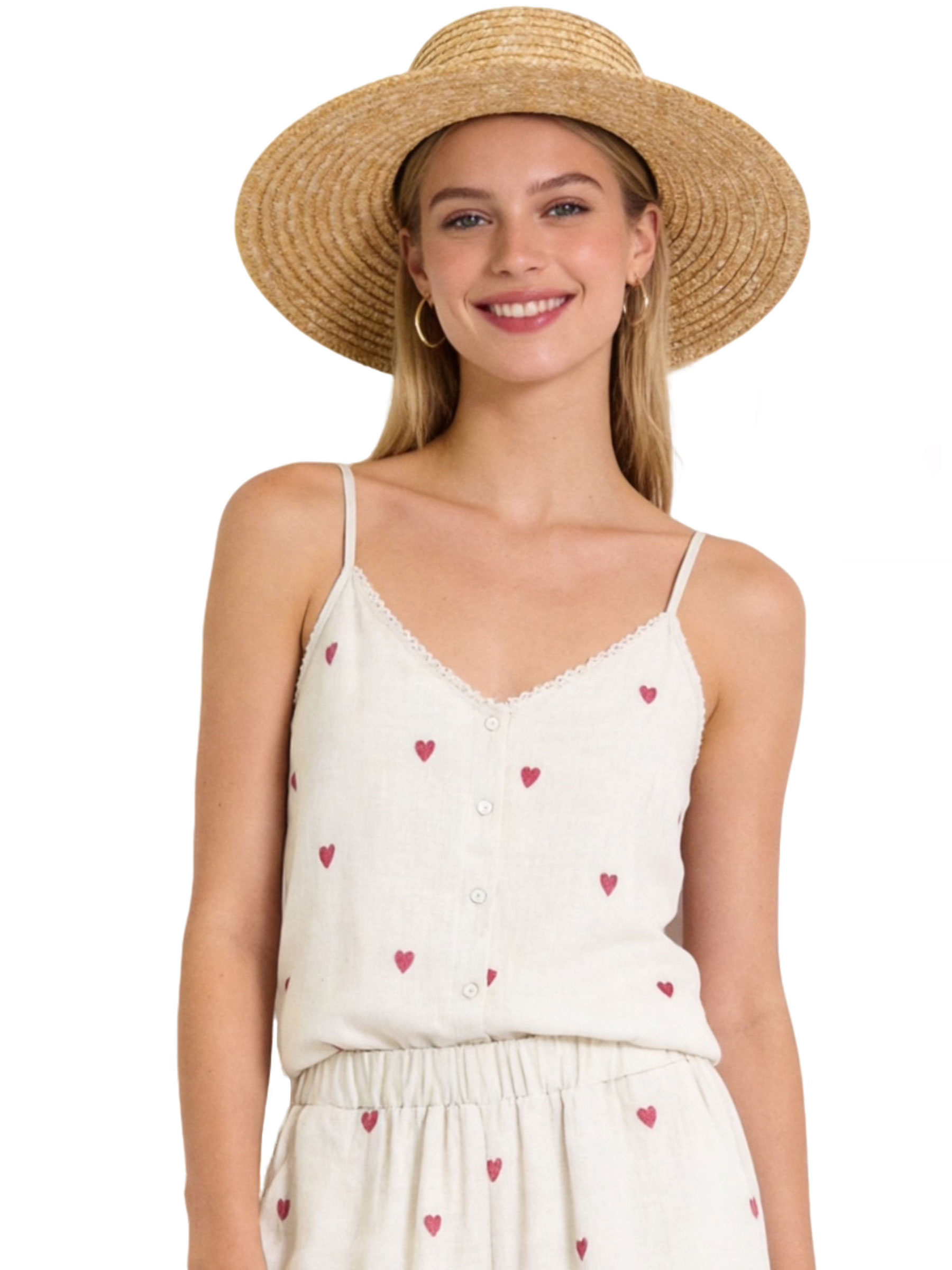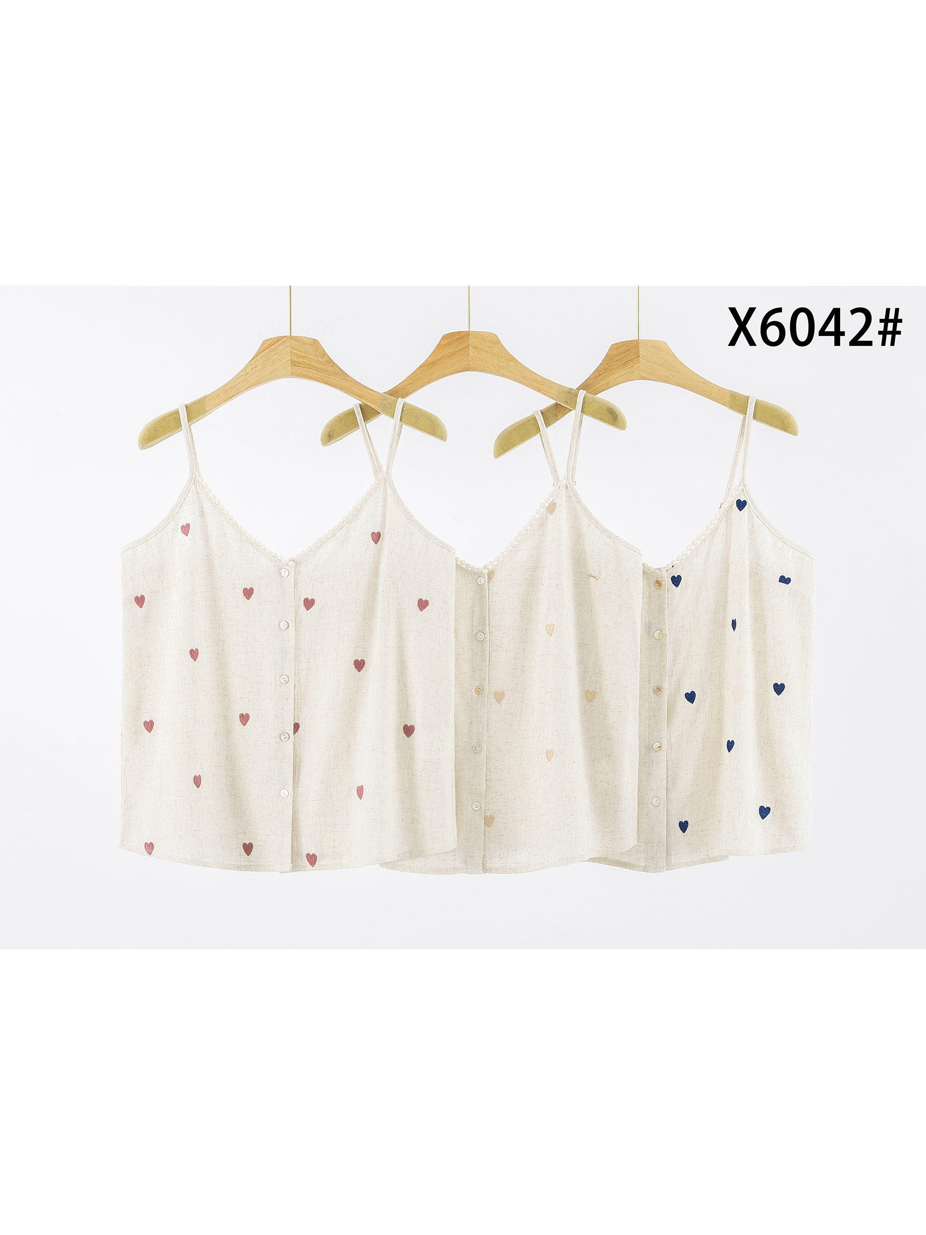 Top de tirantes efecto lino corazones bordados