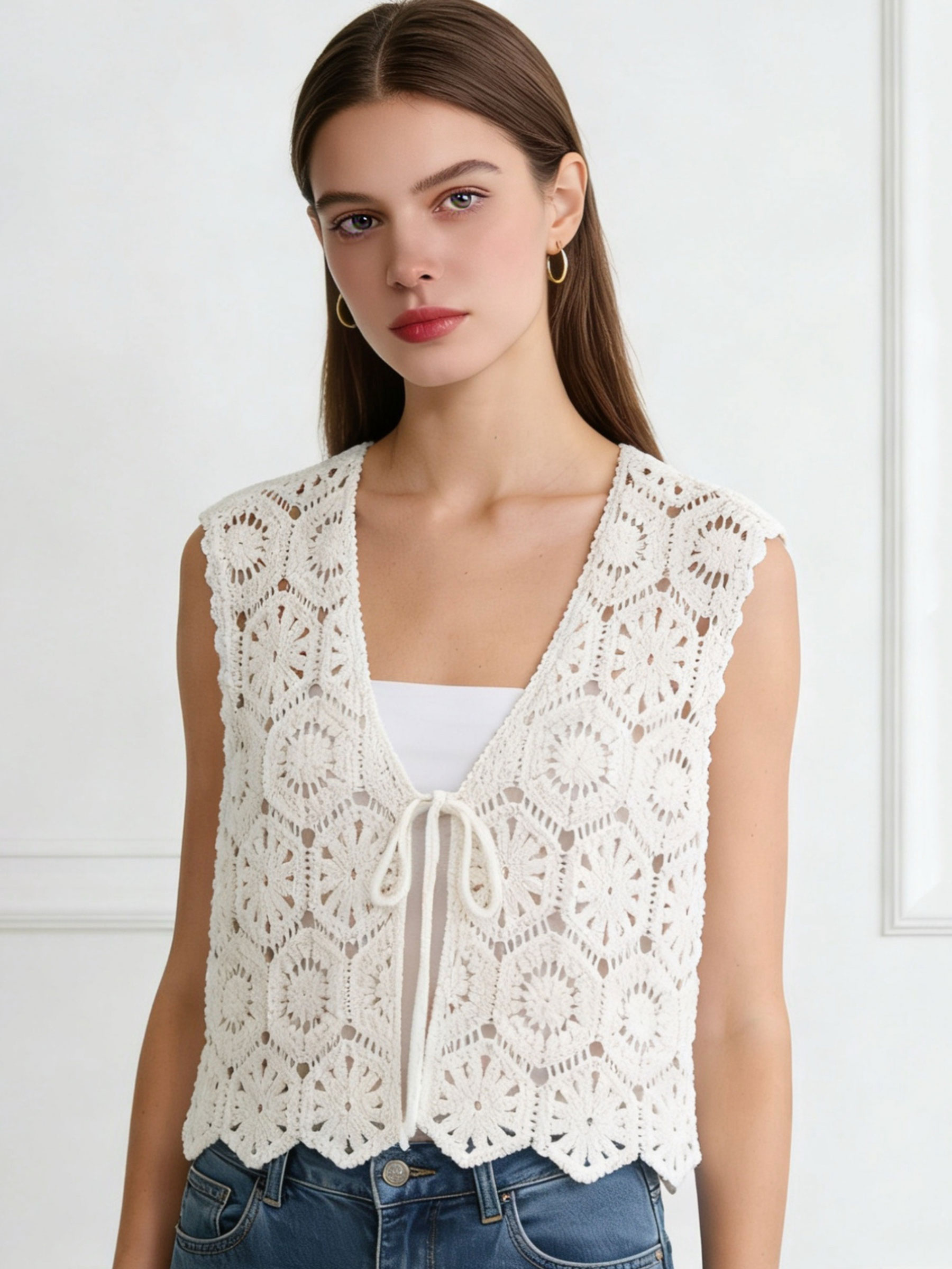 Nuevo Mín. 6 Blusas Top de crochet con cenefa floral MF-17139B Tallas: S/M-M/L.Colección: Primavera/Verano 2026. Ver precio