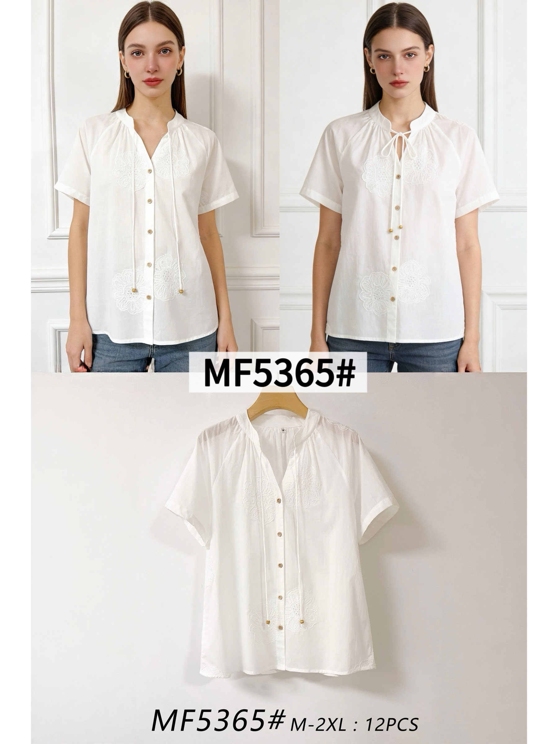 Nuevo Mín. 6 Blusas Blusa lino con bordado volante MF-MF36565 Talla: M-L-XL-XXLColección: Primavera/Verano 2026. Ver precio