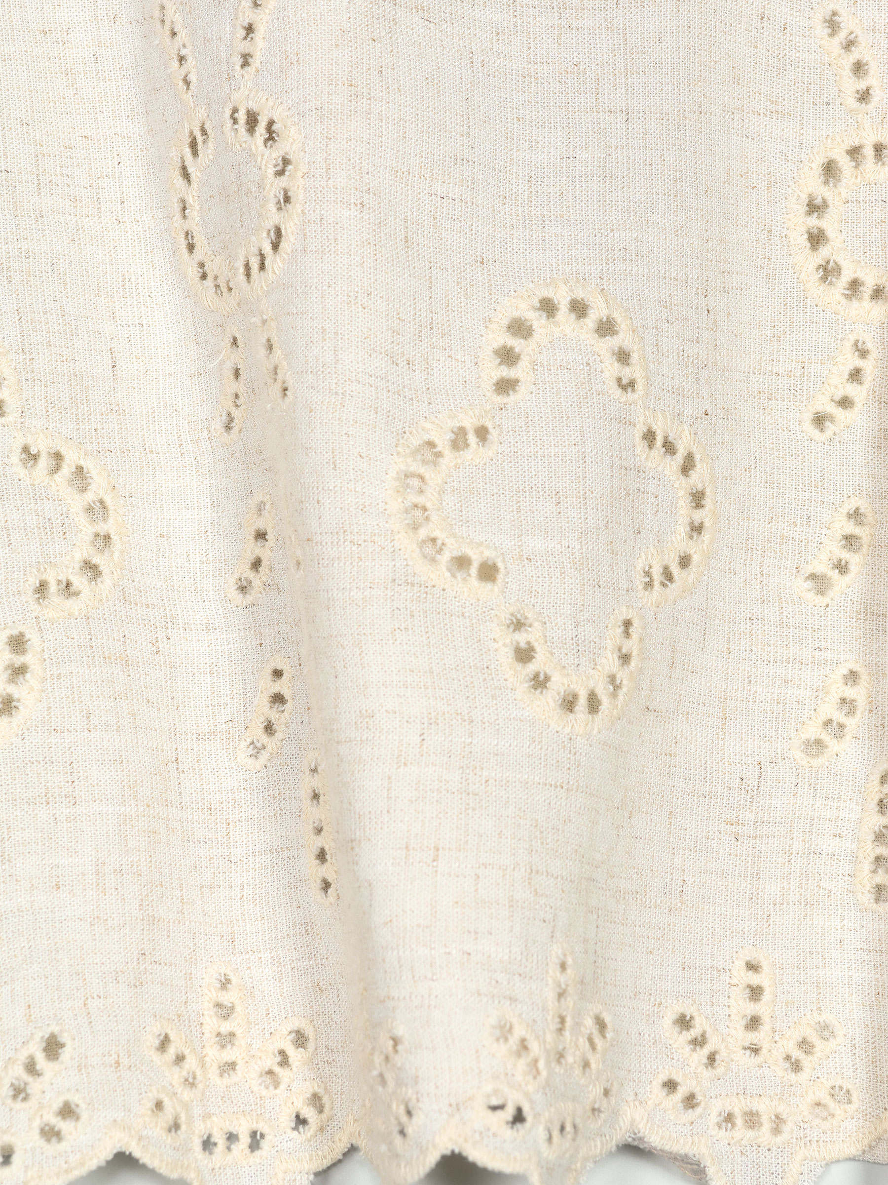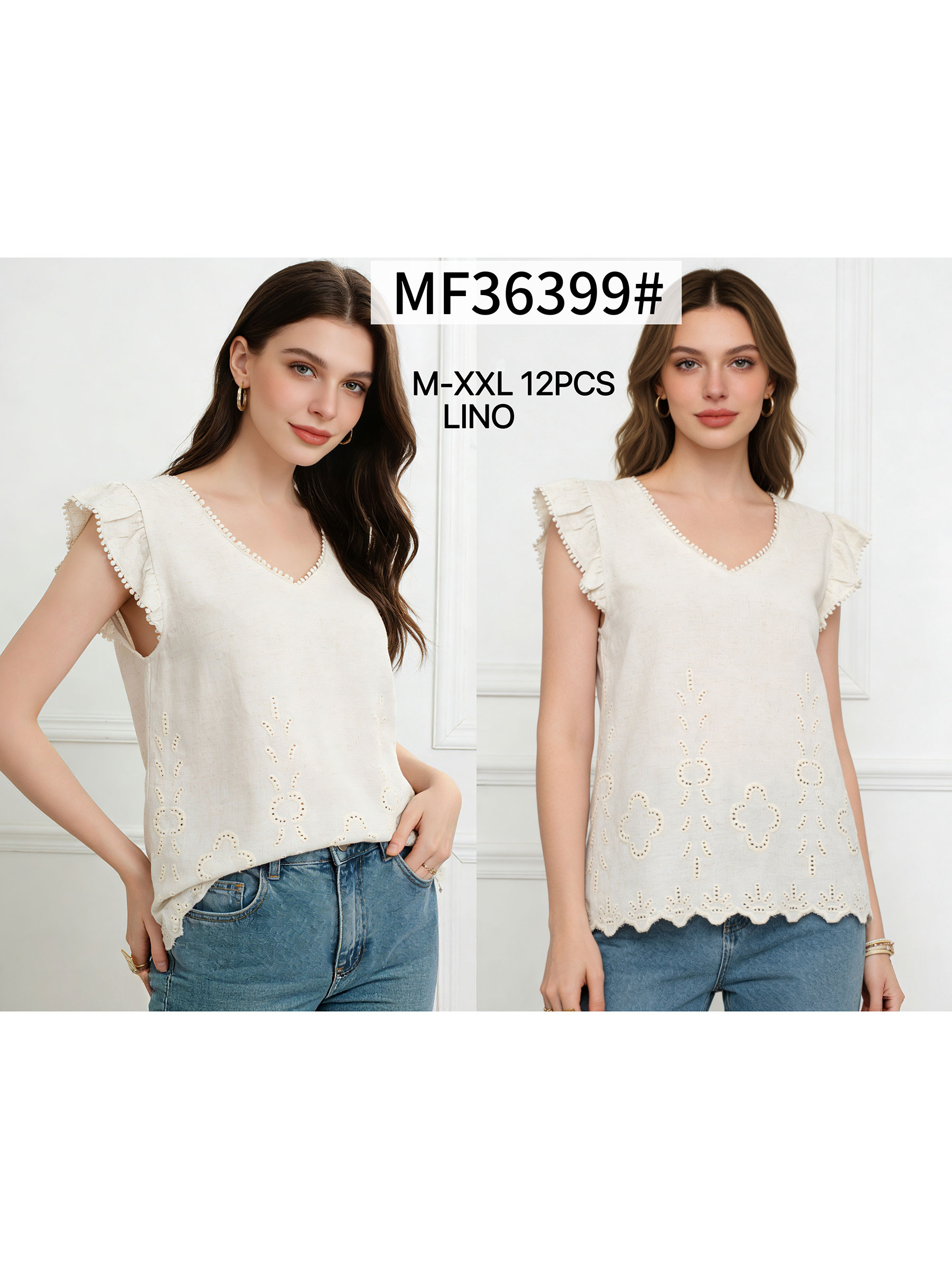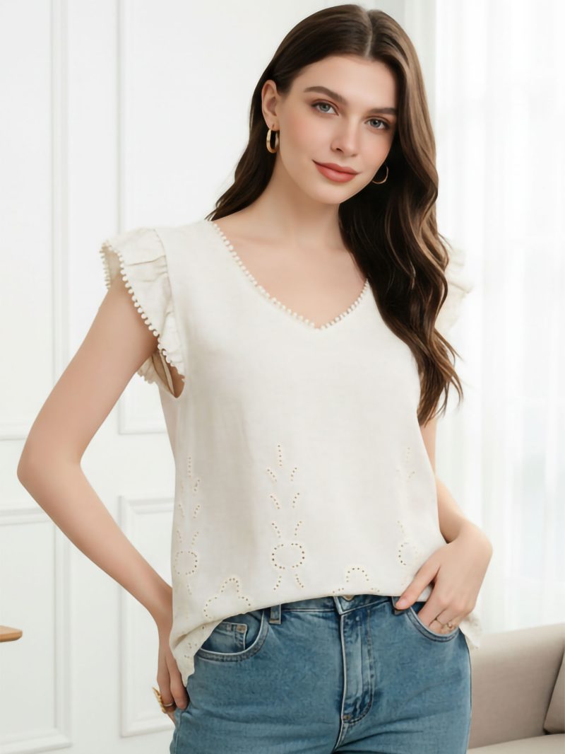 Top lino calado escote pico y volante