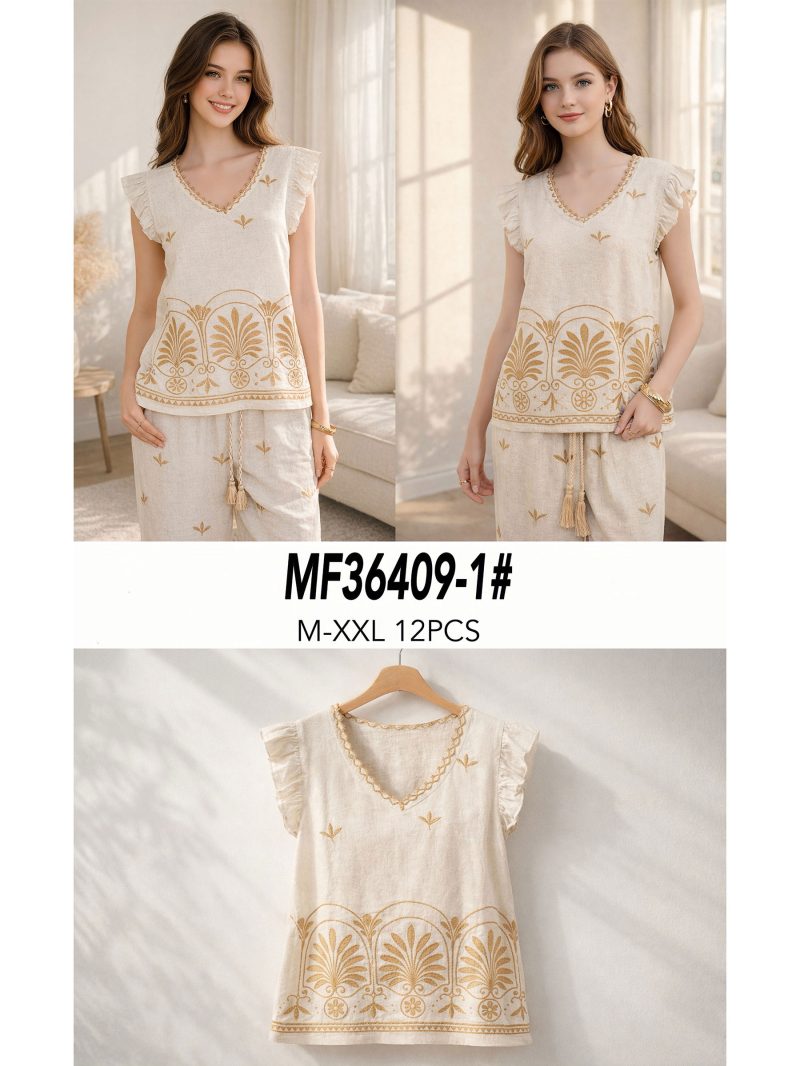 Blusa lino con bordado ornamental y escote pico