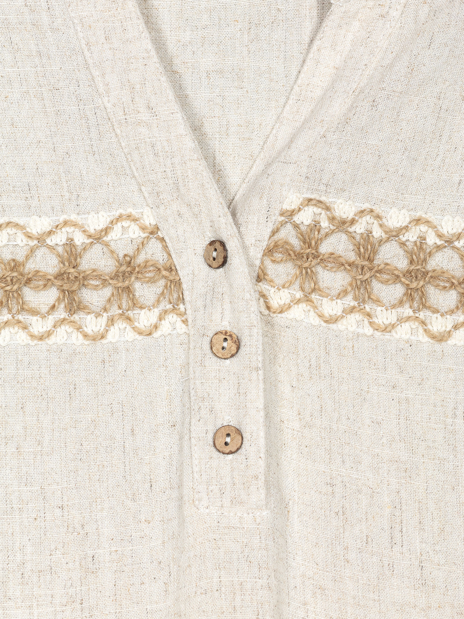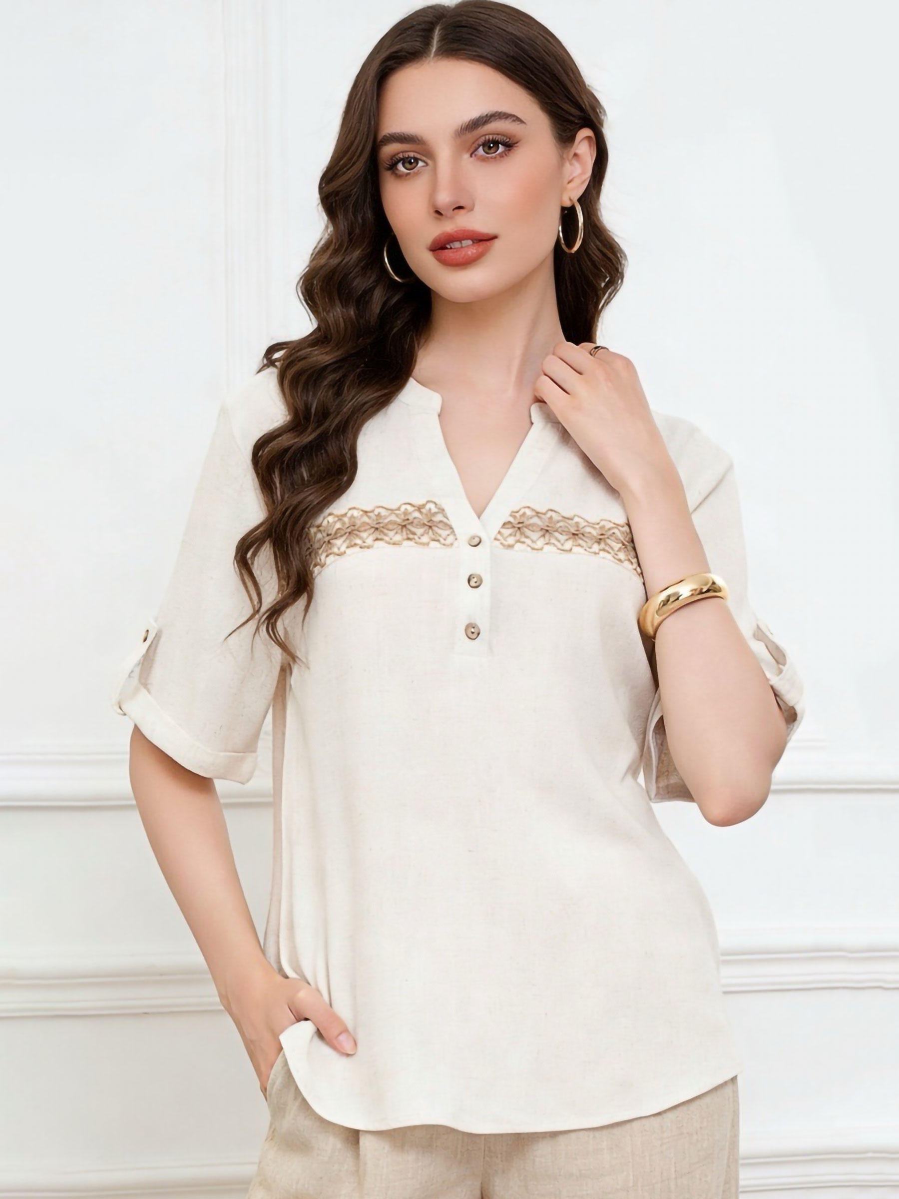 Blusa lino encaje frontal y botones