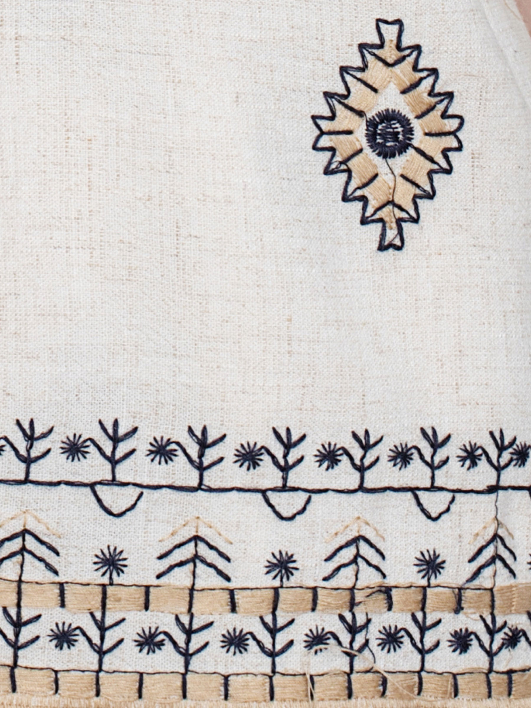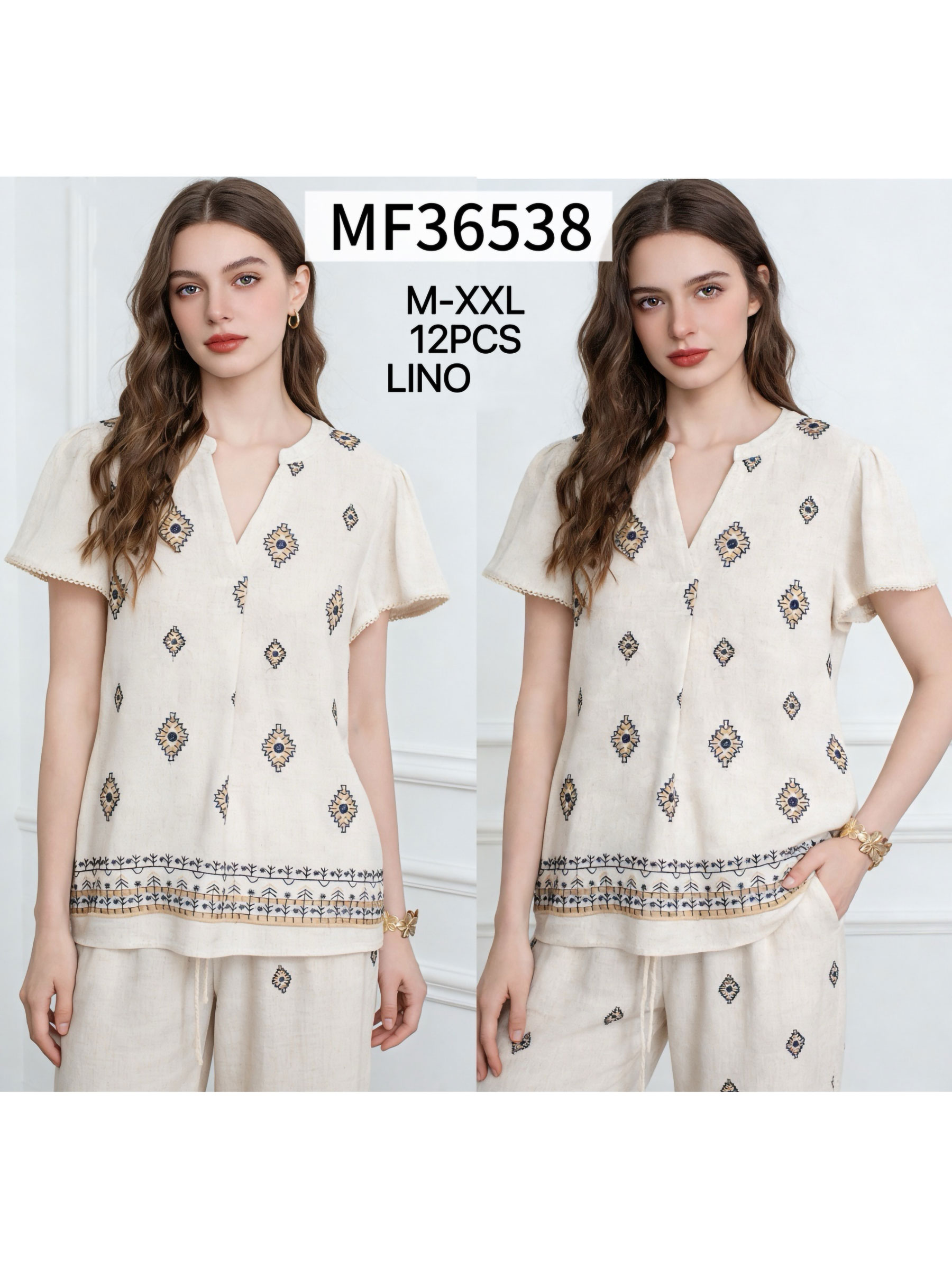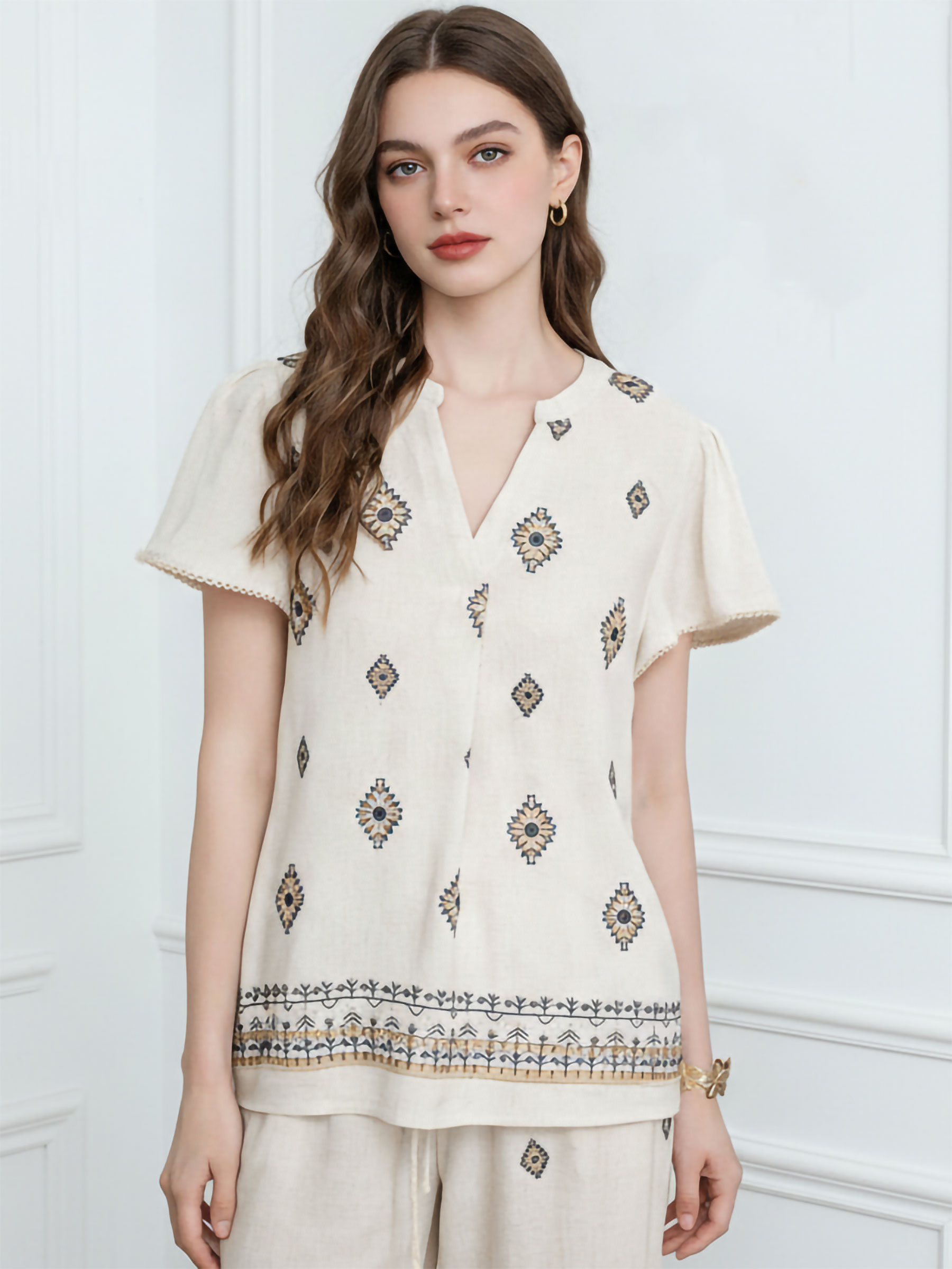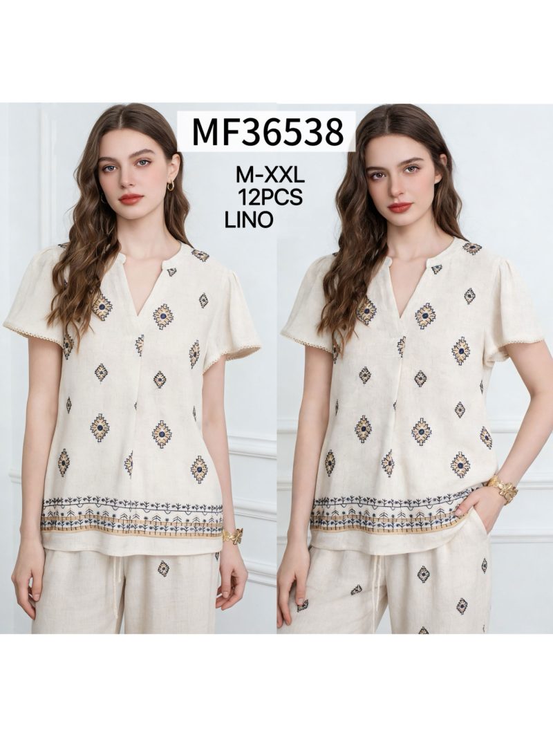 Blusa lino estampado étnico y cenefa