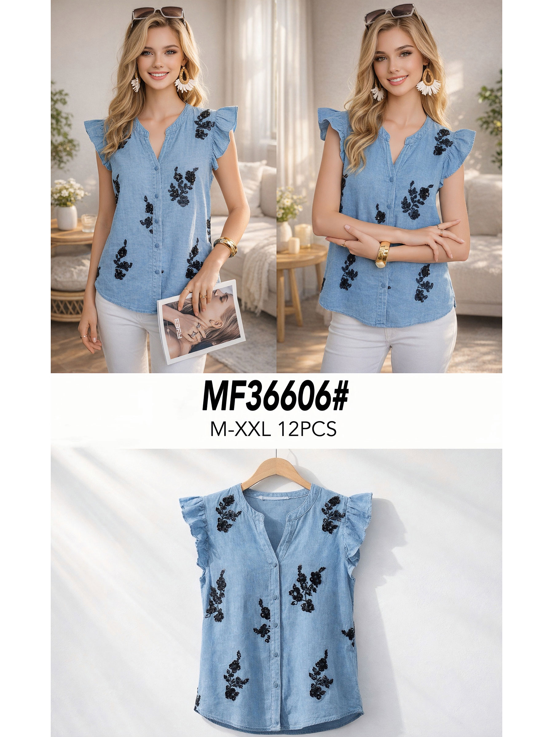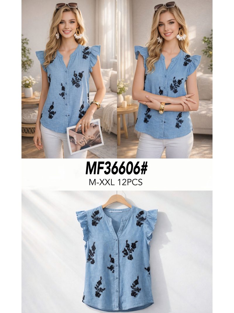 Blusa símil denim bordado lentejuelas