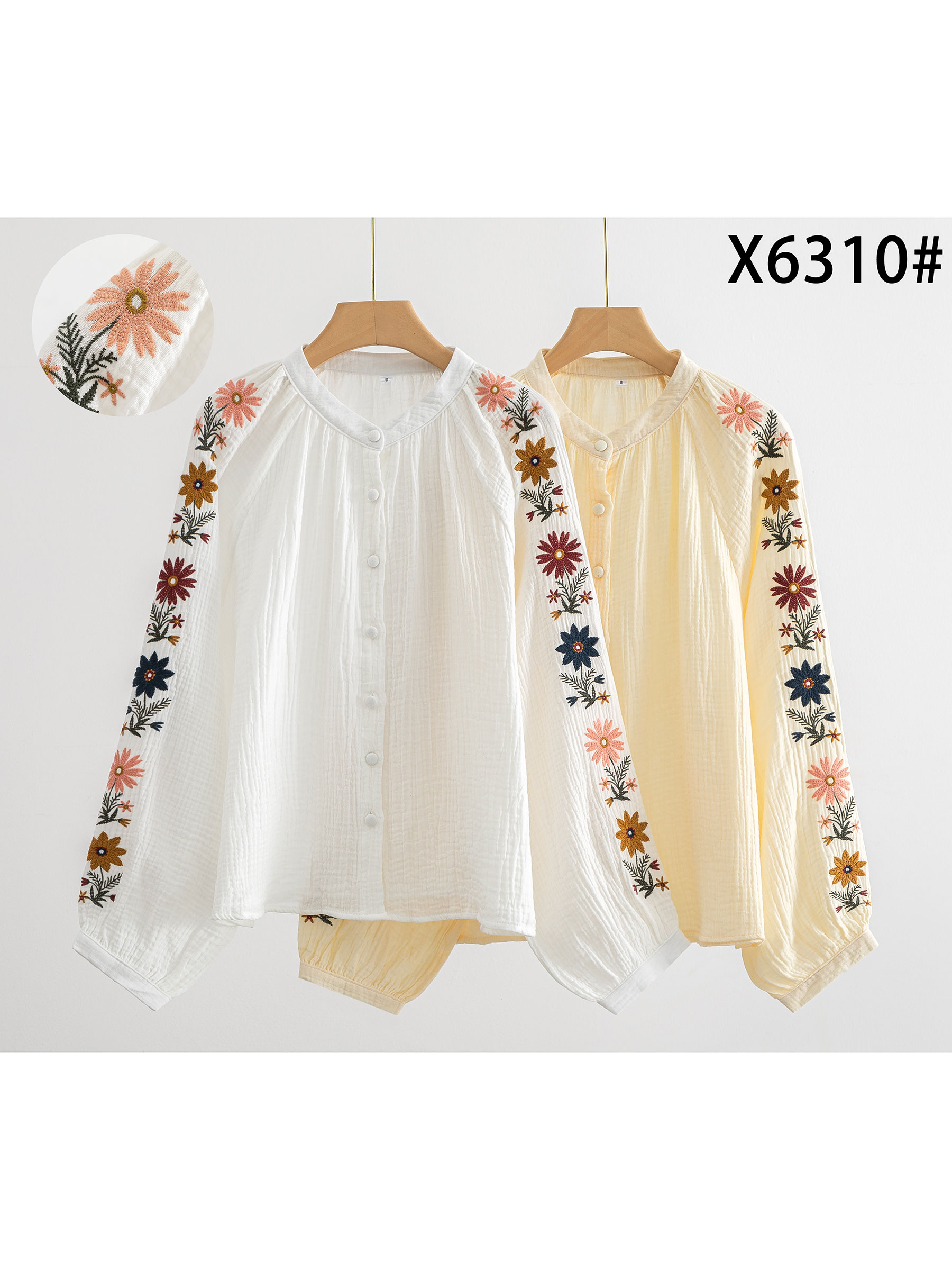 Mín. 6 Blusas Conjunto de hojas bordadas: blousa y pantalón DB-X5677 Talla: S-M-L.Colección: Primavera/Verano 2026 Ver precio