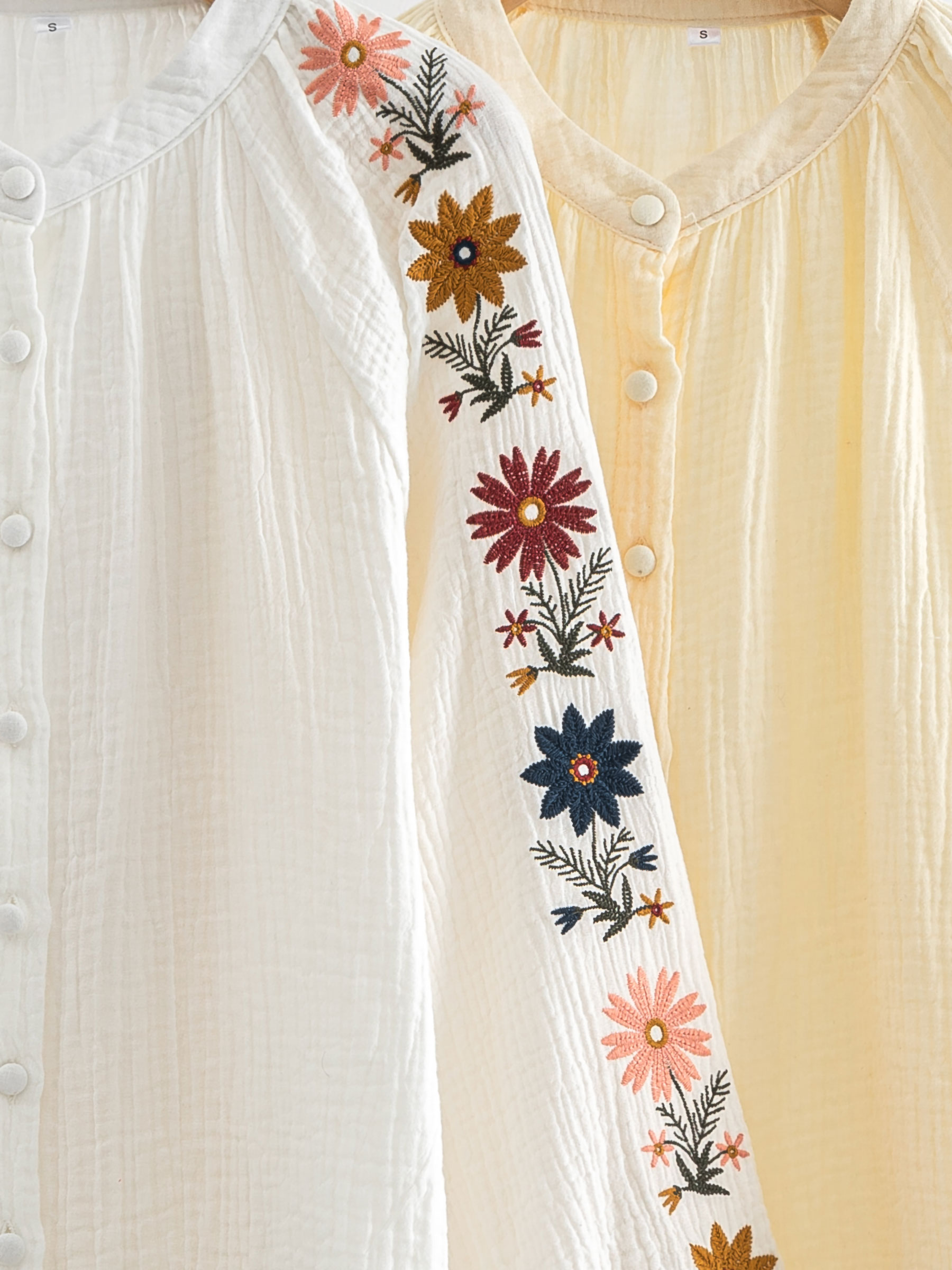 Mín. 6 Blusas Blusa lino botones y bordado conchas MF-MF36385-1 Talla: M-L-XL-XXLColección: Primavera/Verano 2026. Ver precio