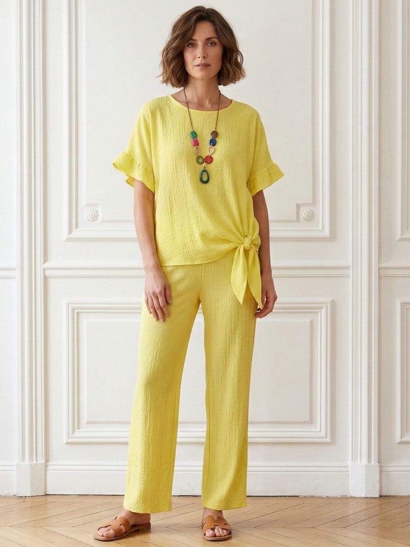 Nuevo Blusas Conjunto blusa textura con encaje y pantalón ZD-8703 Talla única.Colección: Primavera/Verano 2026. Ver precio