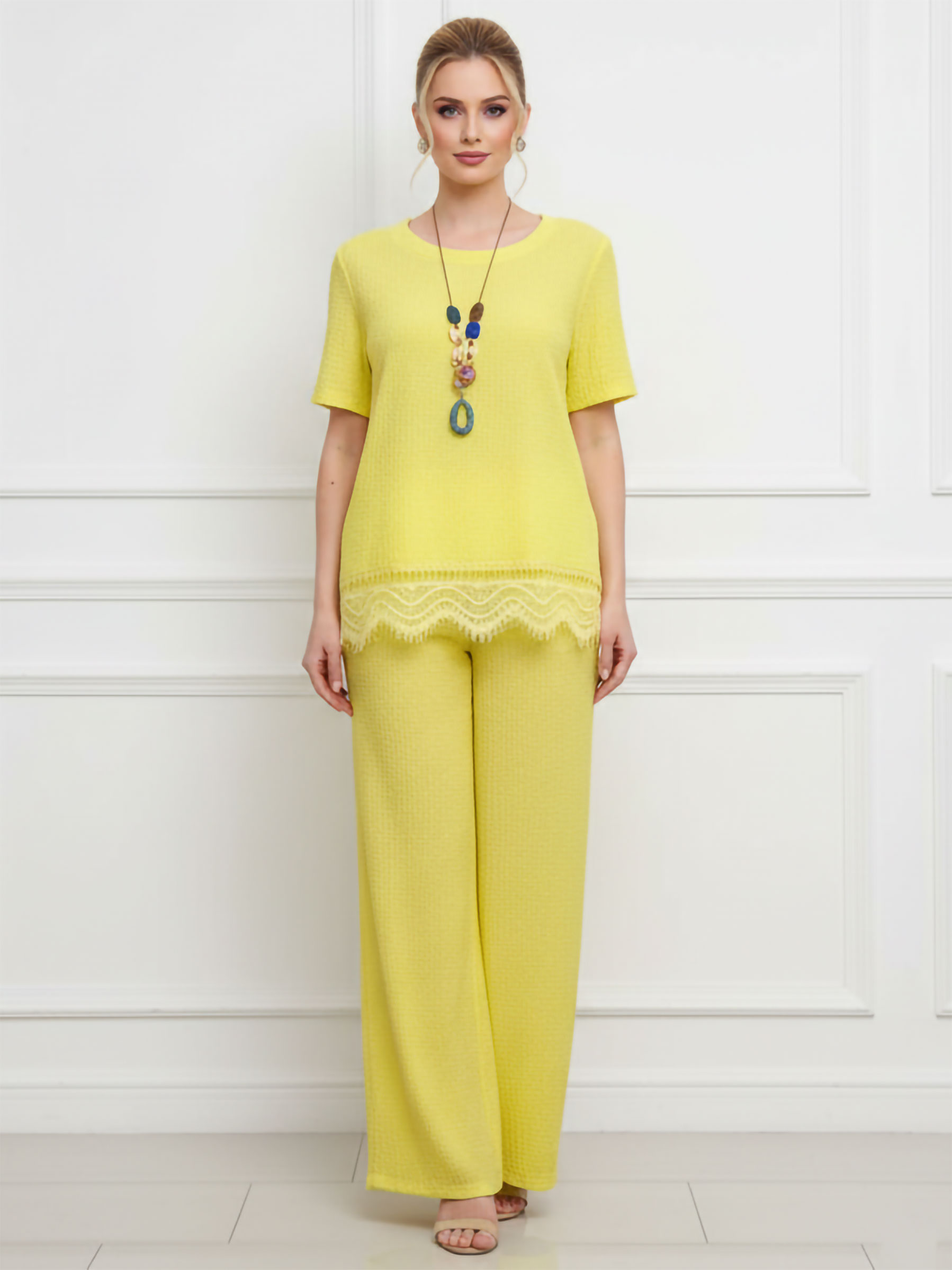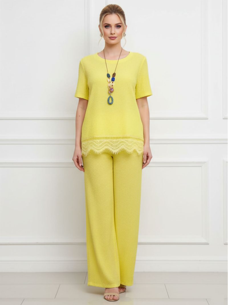 Conjunto blusa textura con encaje y pantalón