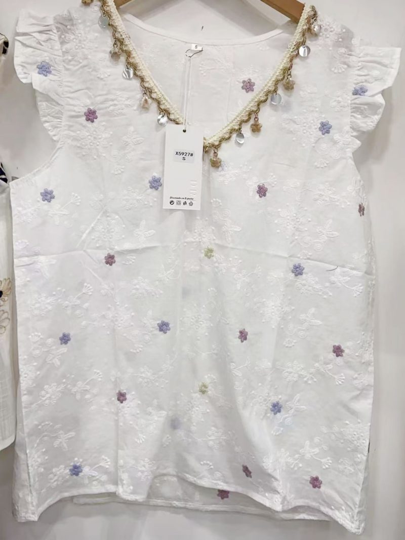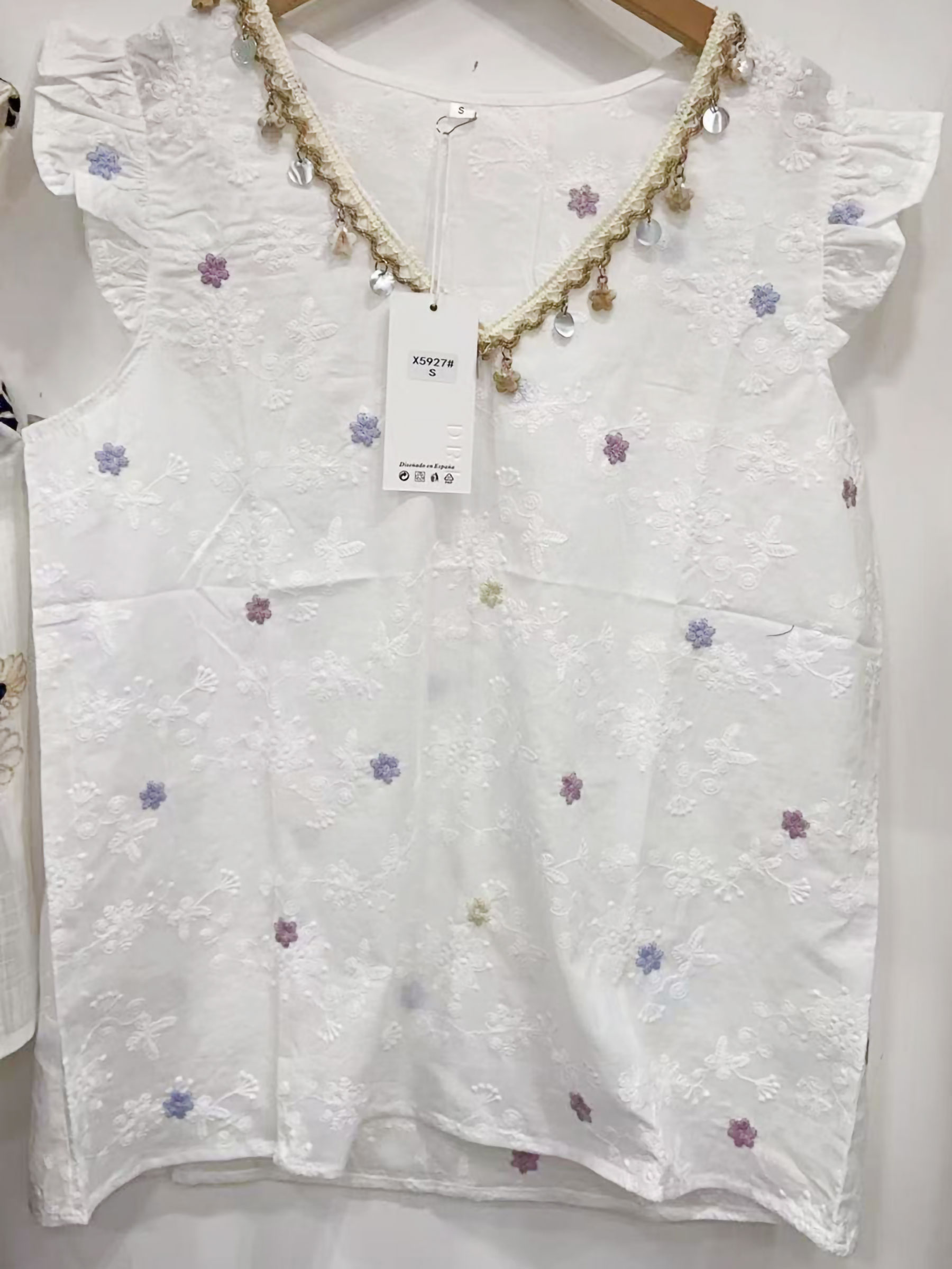 Nuevo Mín. 6 Blusas Blusa bordada de flores DB-X6310 Tallas: S-M-L.Colección: Primavera/Verano 2026. Ver precio