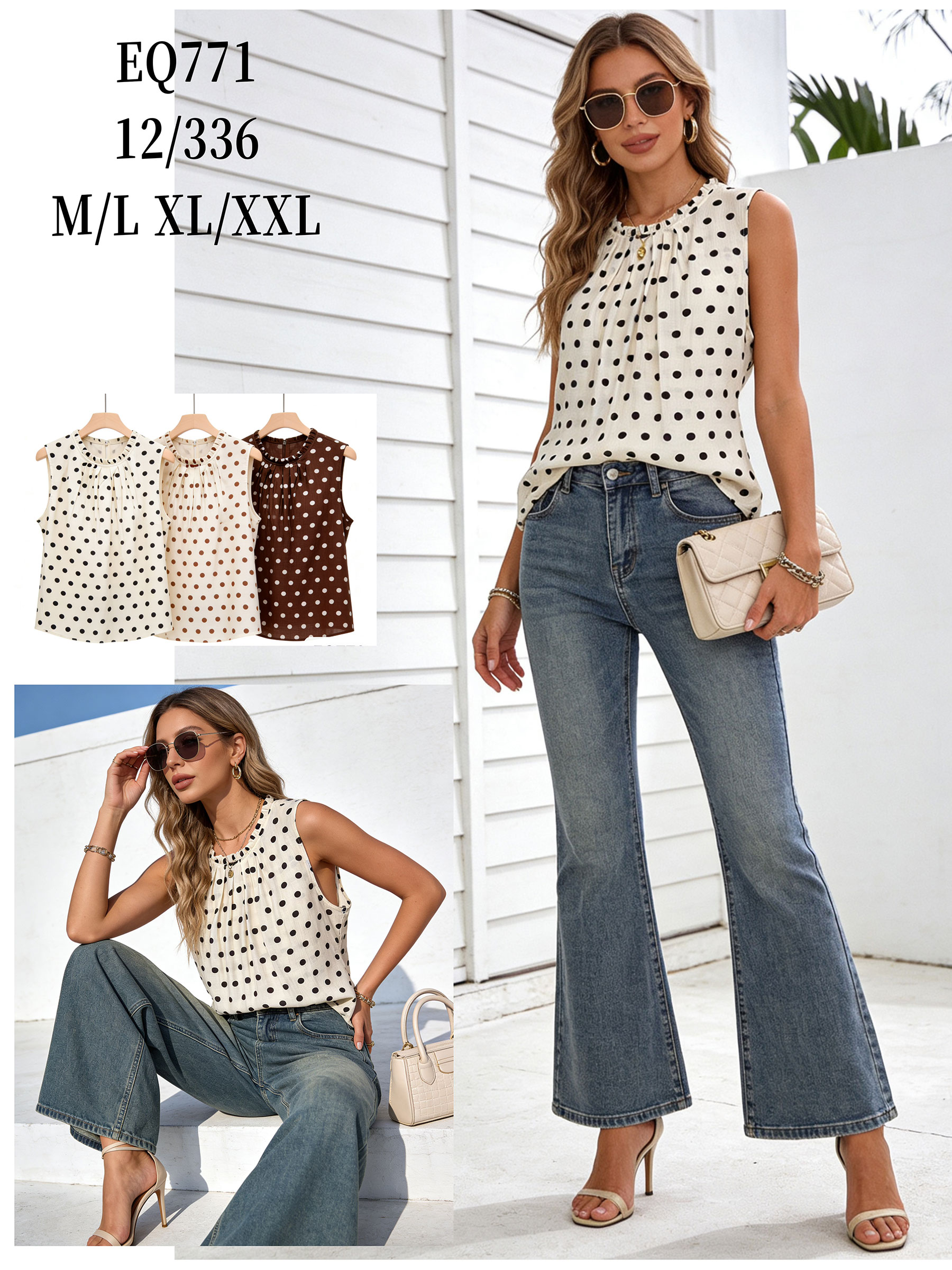 Blusa lunares con cuello fruncido