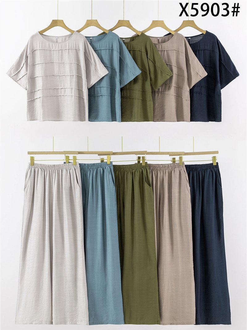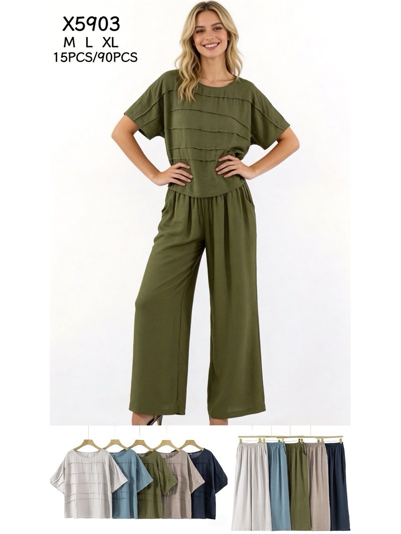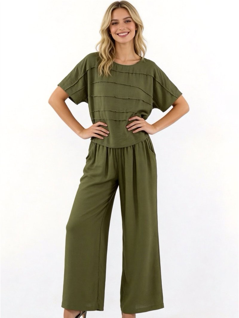 Conjunto de blusa textura y pantalón wide-leg