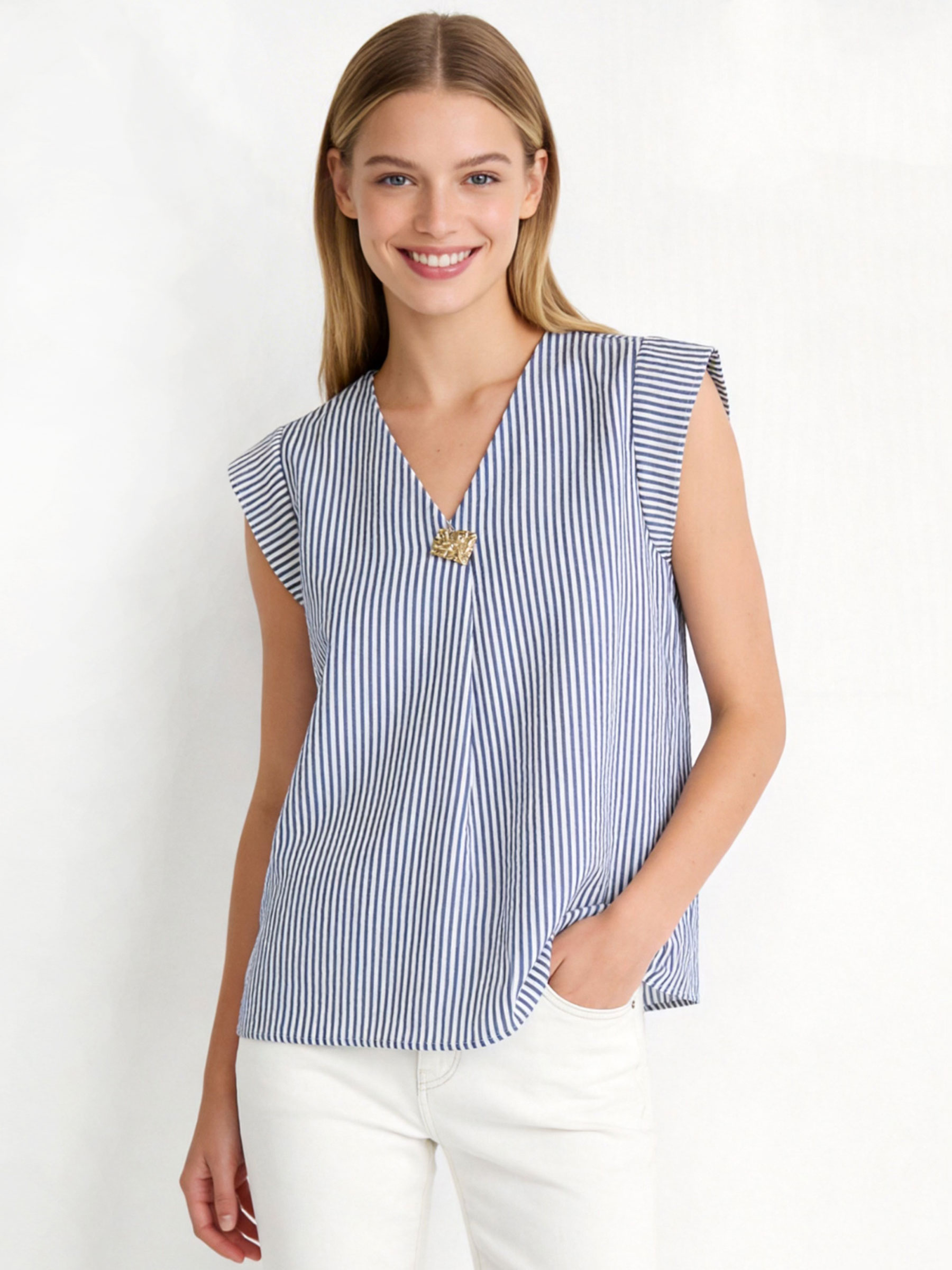Top de rayas talla grande con detalle joya