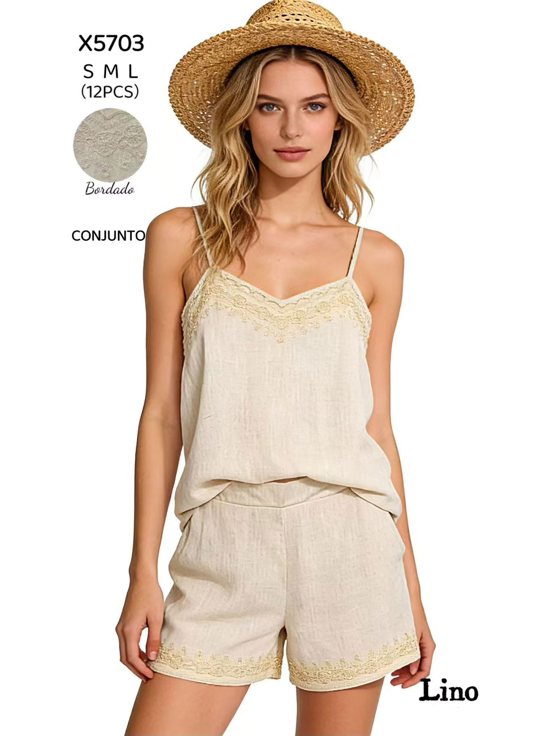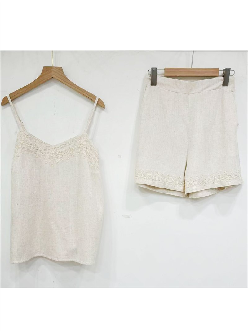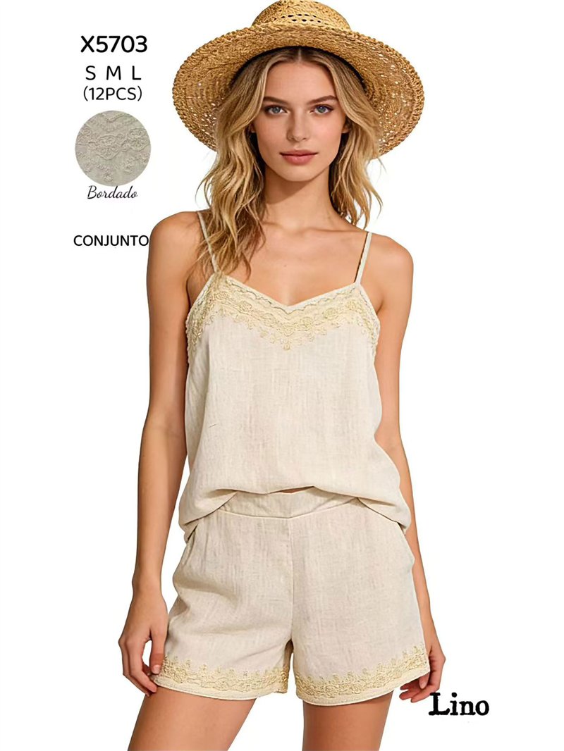 Conjunto de lino top bordado y short