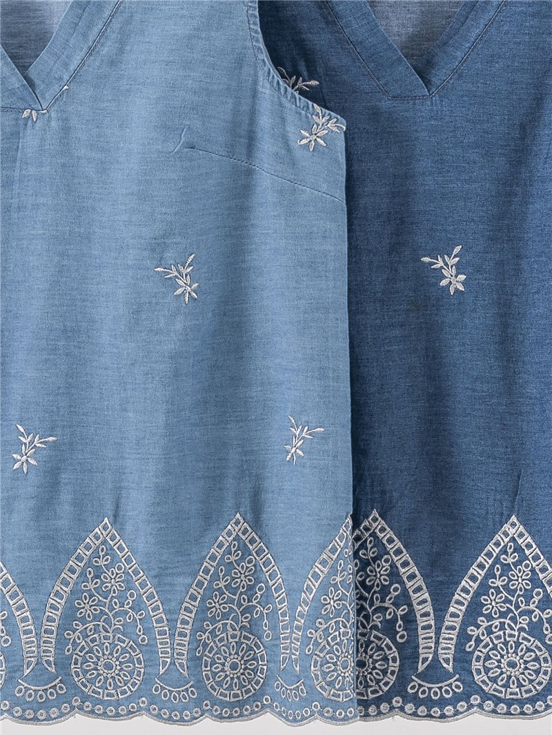 Nuevo Mín. 6 Blusas Top de tirantes bordado efecto lino DB-X5737 Tallas: S-M-L.Colección: Primavera/Verano 2026. Ver precio