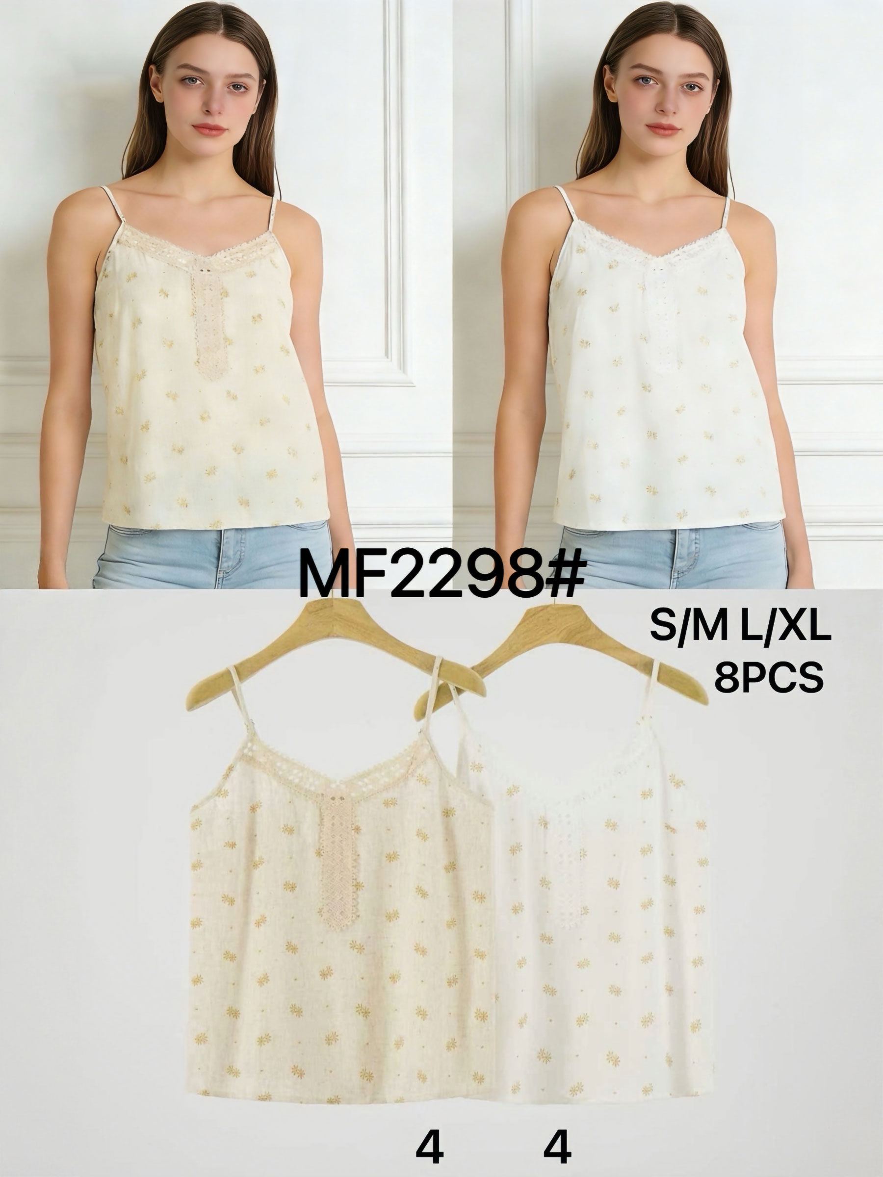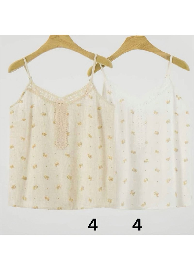 Top lencero efecto lino florecitas con encaje