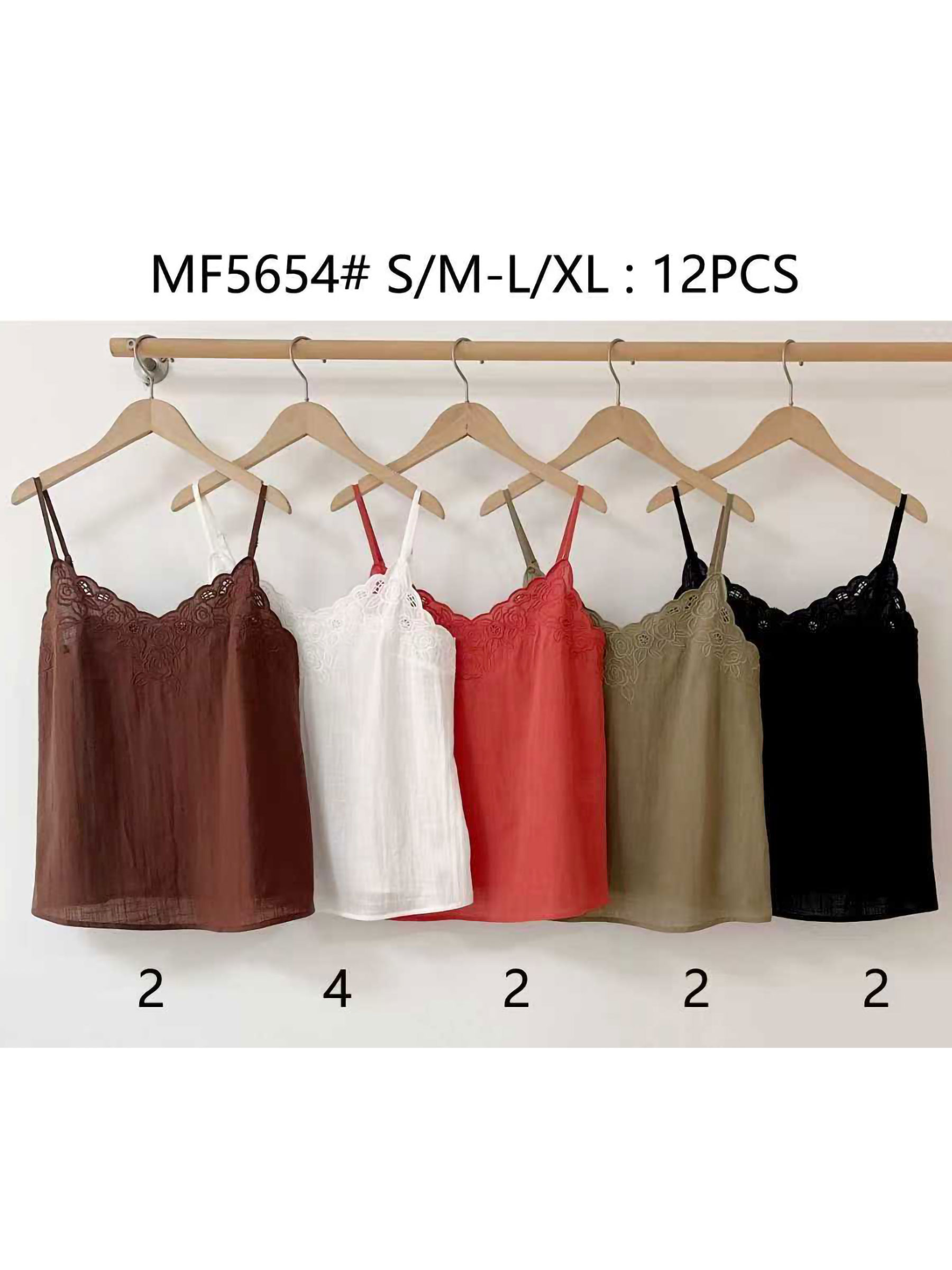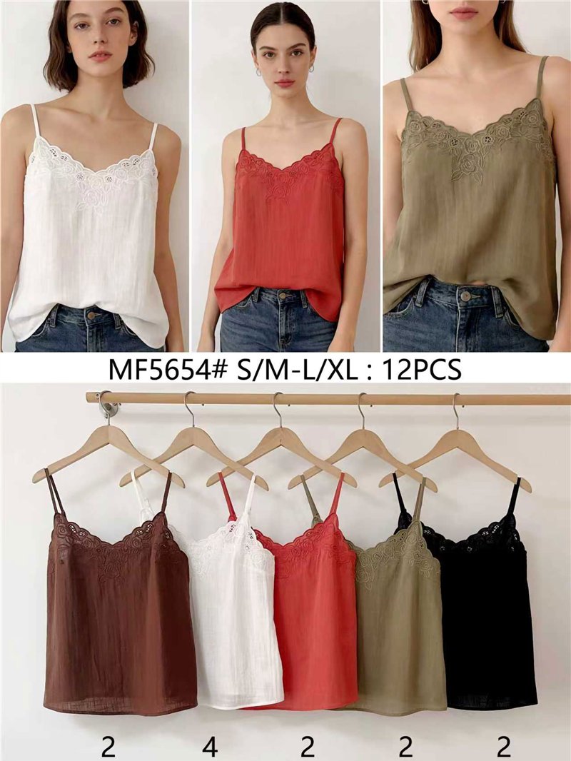 Mín. 6 Blusas Blusa de algodón ribete de encaje DB-X5699 Talla: S-M-L.Colección: Primavera/Verano 2026 Ver precio