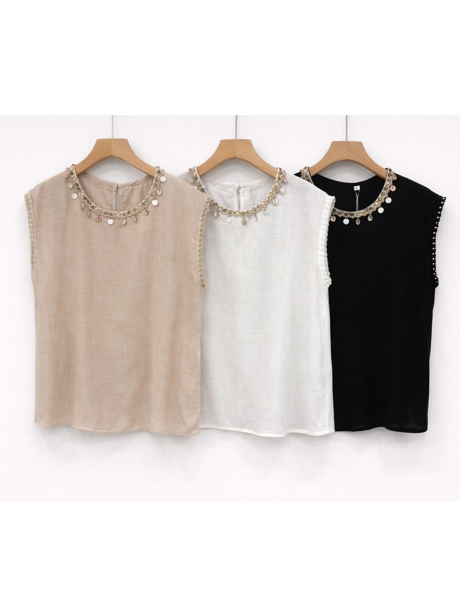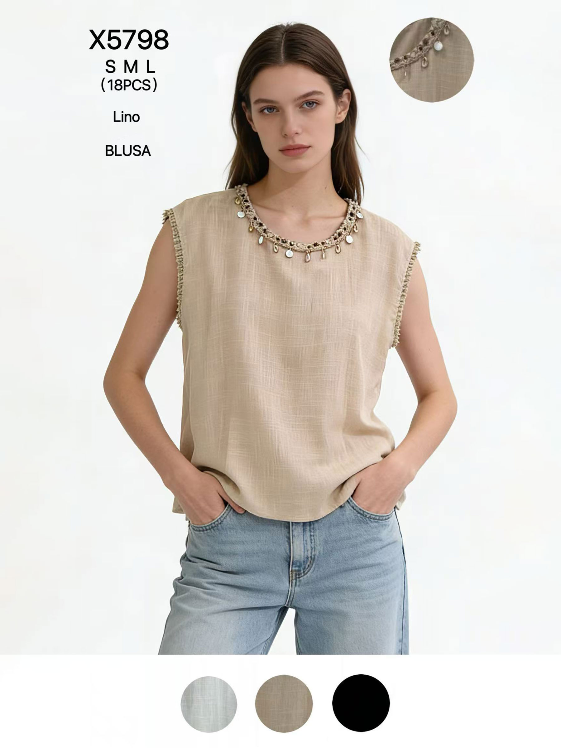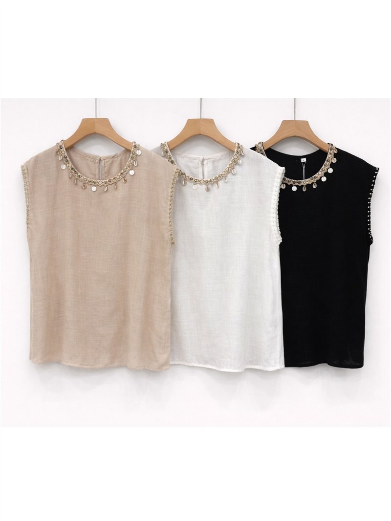Nuevo Mín. 6 Blusas Top sin mangas con broche estrella de mar DB-X6116 Tallas: S-M-L.Colección: Primavera/Verano 2026. Ver precio
