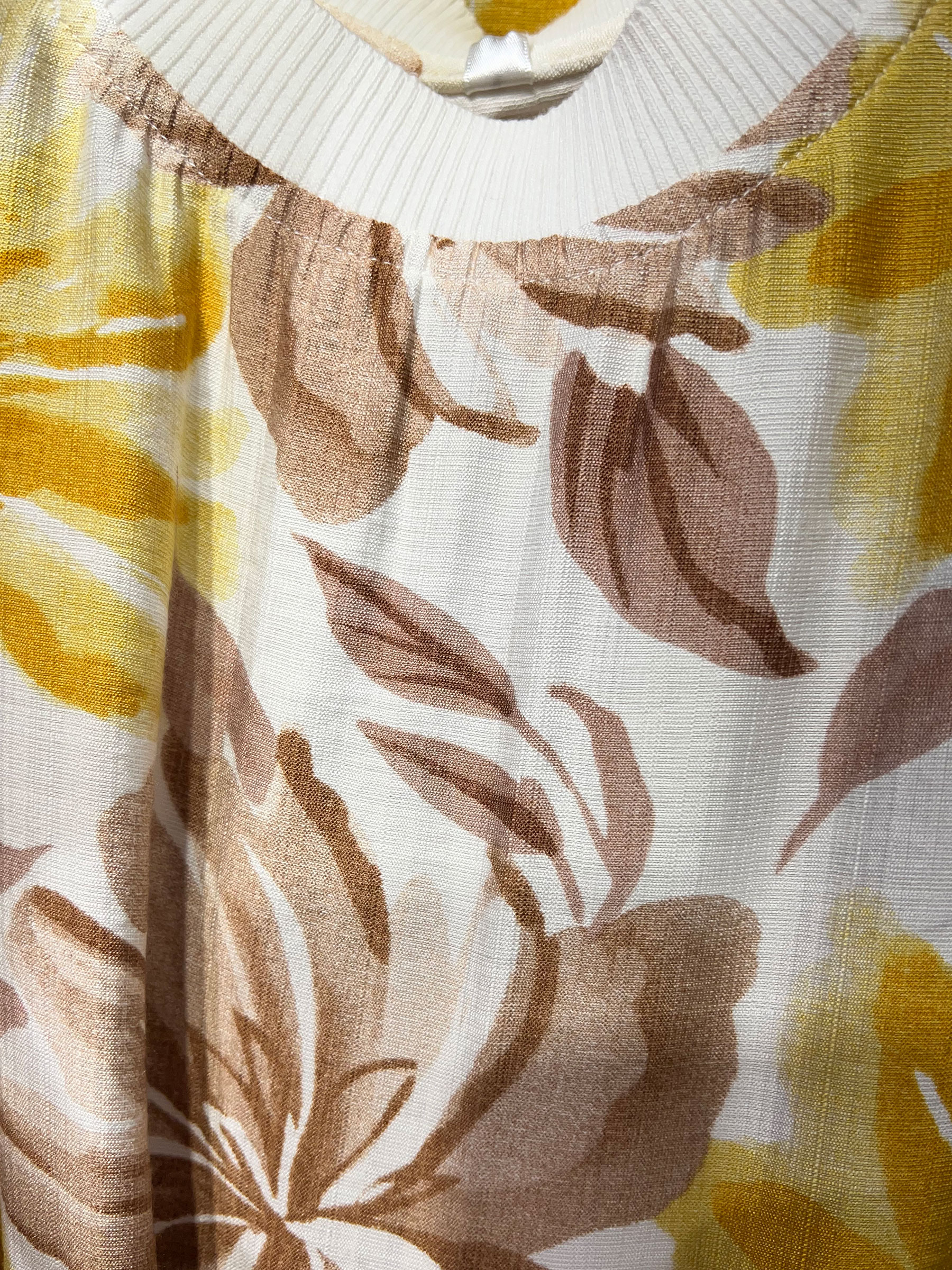 Conjunto de dos piezas. Estampado floral. Top sin mangas. Cuello redondo. Pantalón wide leg. Cintura elástica.