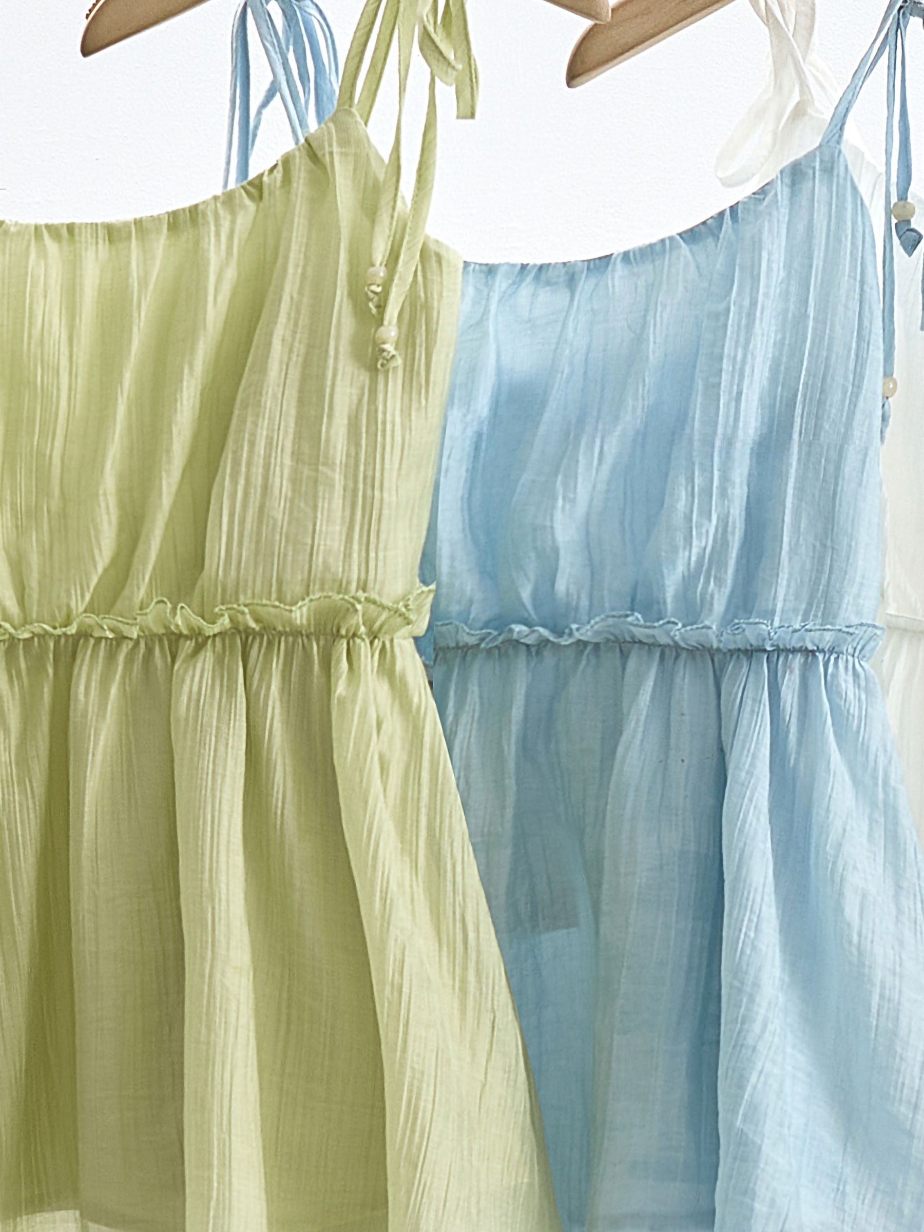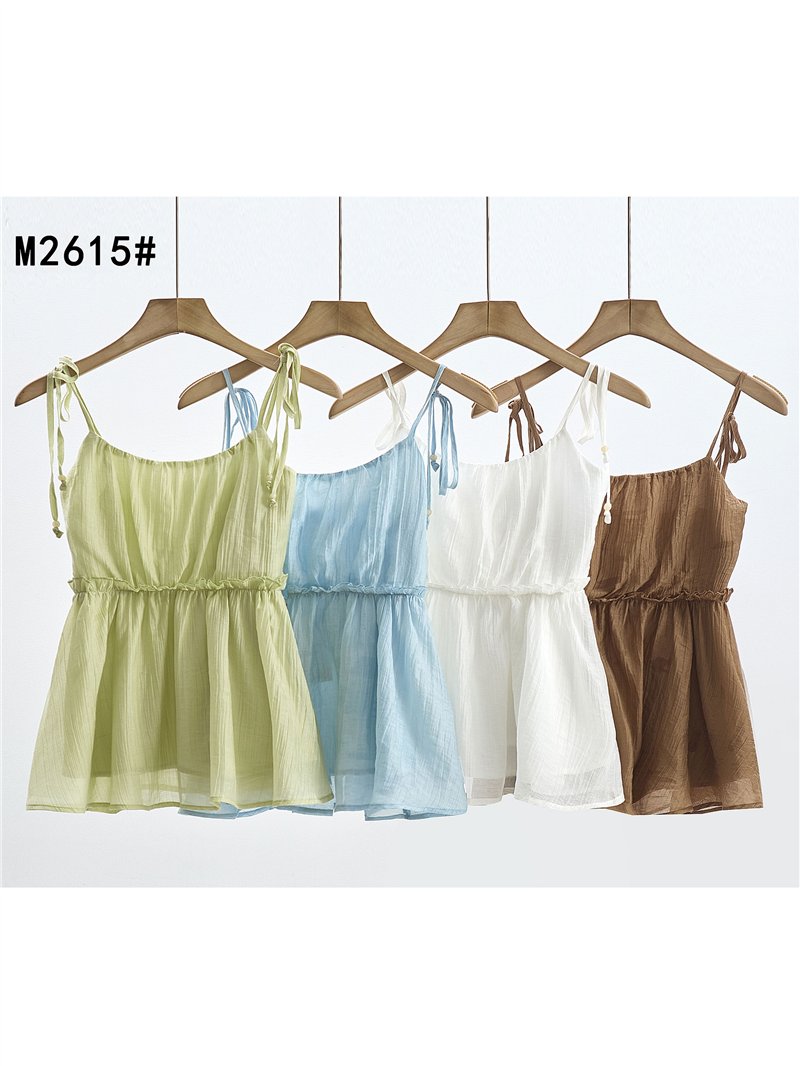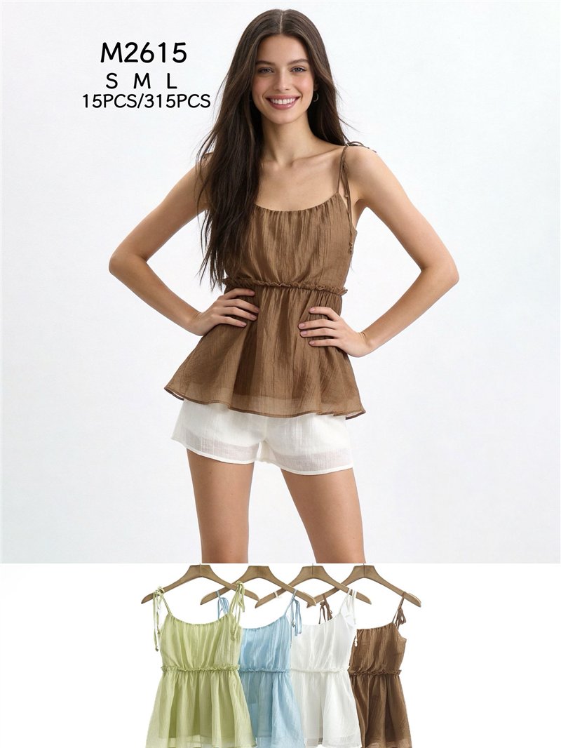 Top. Escote recto fruncido. Tirantes finos regulables con lazada. Corte peplum. Bajo fluido. Tejido semitransparente.