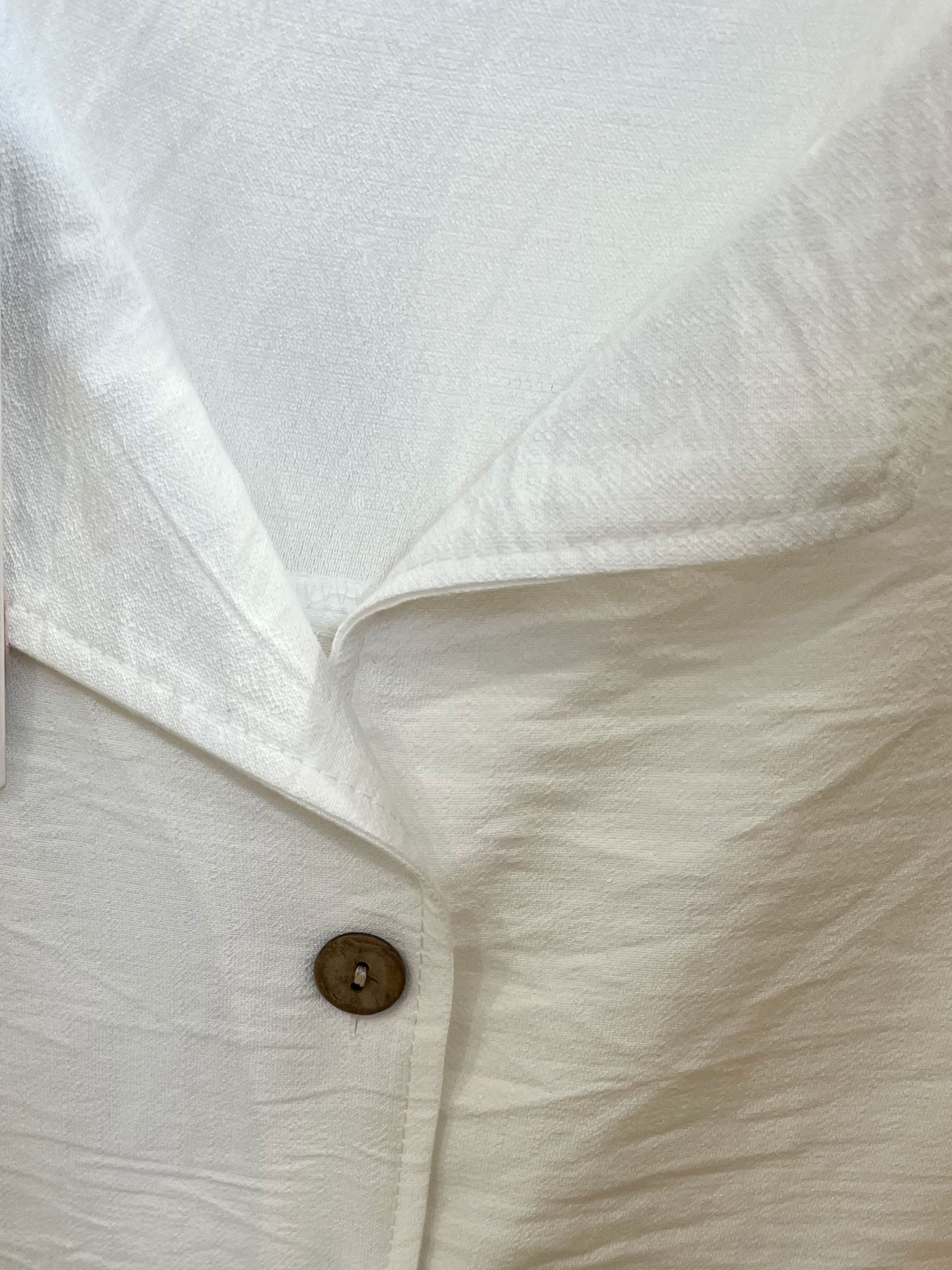Blusa fluida. Escote con solapa. Manga corta amplia. Cierre frontal con botones.