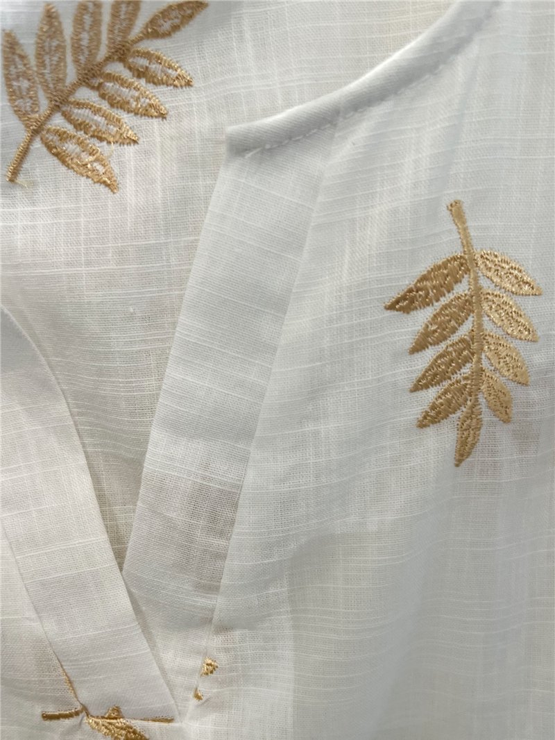 Blusa sin mangas hojas bordadas