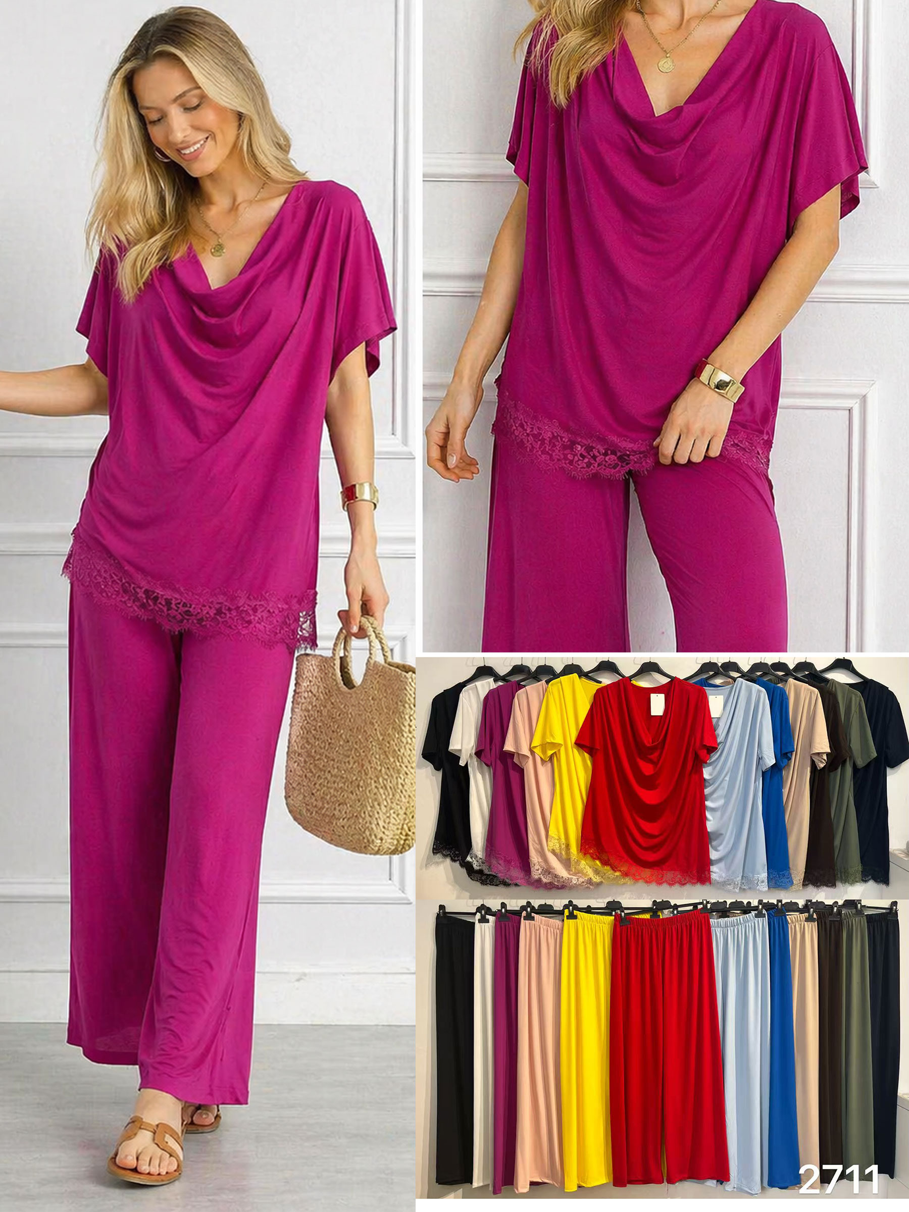 Nuevo Mín. 6 Blusas Conjunto blusa bordada de hojas y pantalón wide-leg DB-X6192 Tallas: M/L-XL/XXL.Colección: Primavera/Verano 2026. Ver precio
