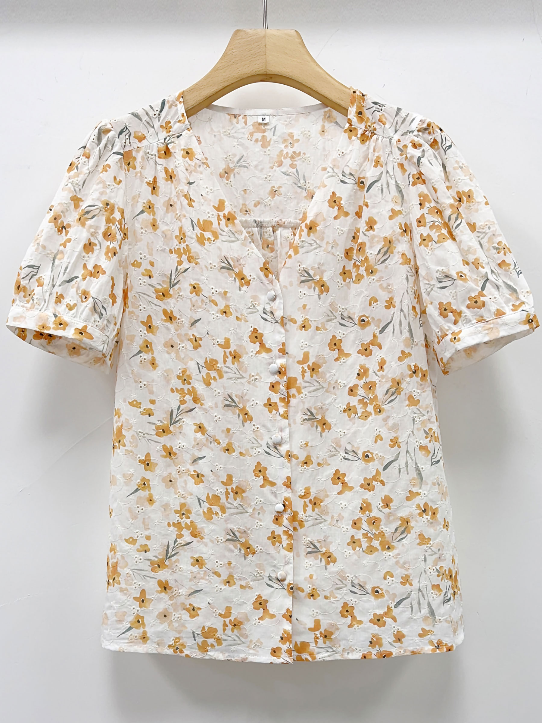 Blusa floral mostaza manga abullonada