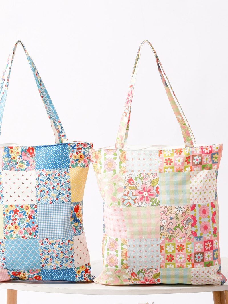 Bolsa tote canvas patchwork pastel