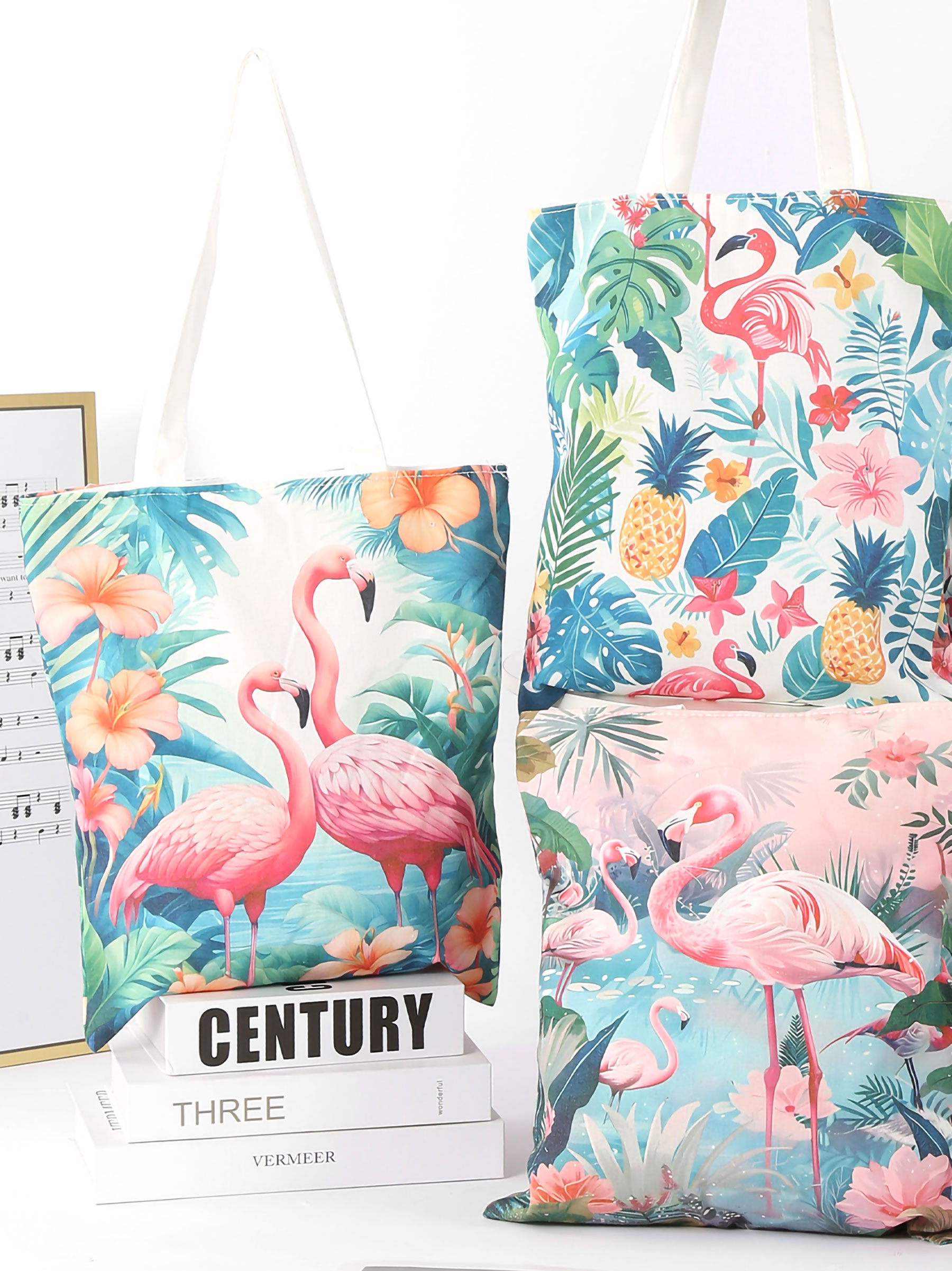 Bolso tote estampado flamencos tropicales