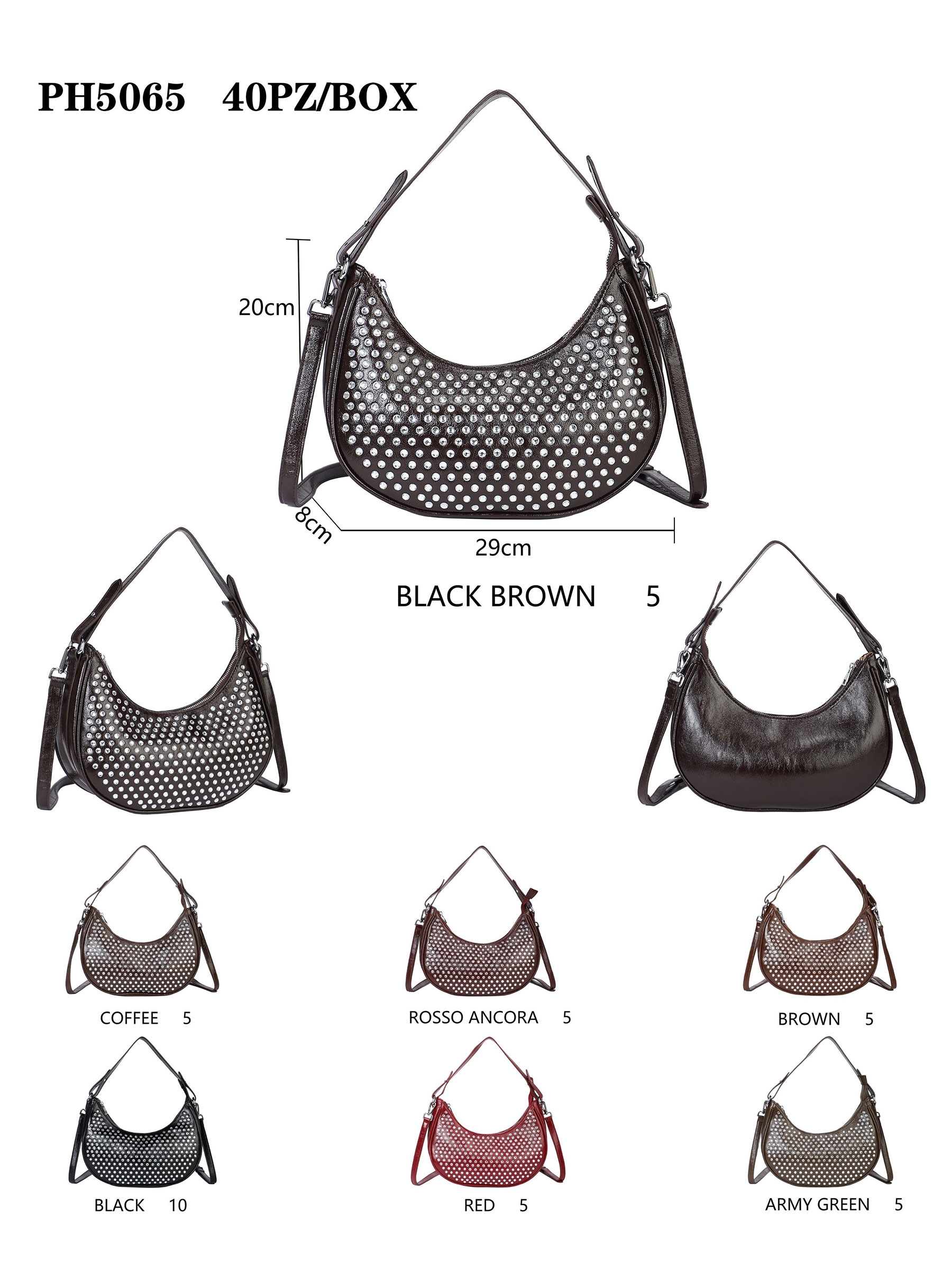 Detalles de AB-PH5065 bolso de hombro media luna tachas