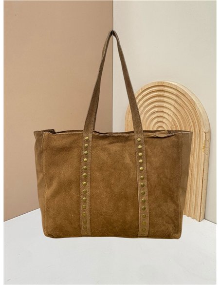 Shopper piel serraje con tachuelas Shopper piel serraje con tachuelas