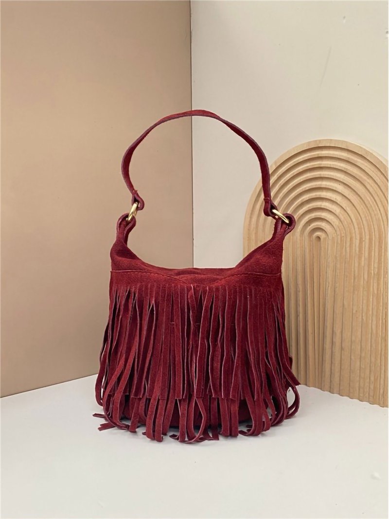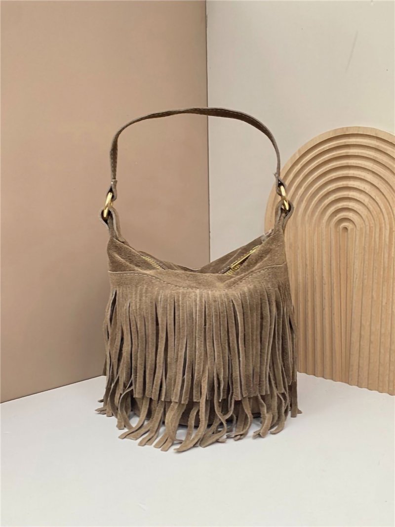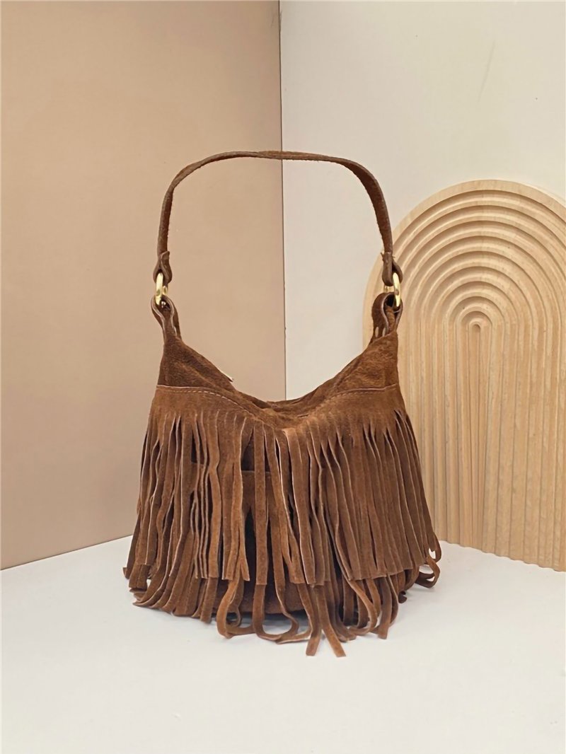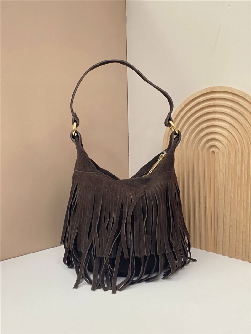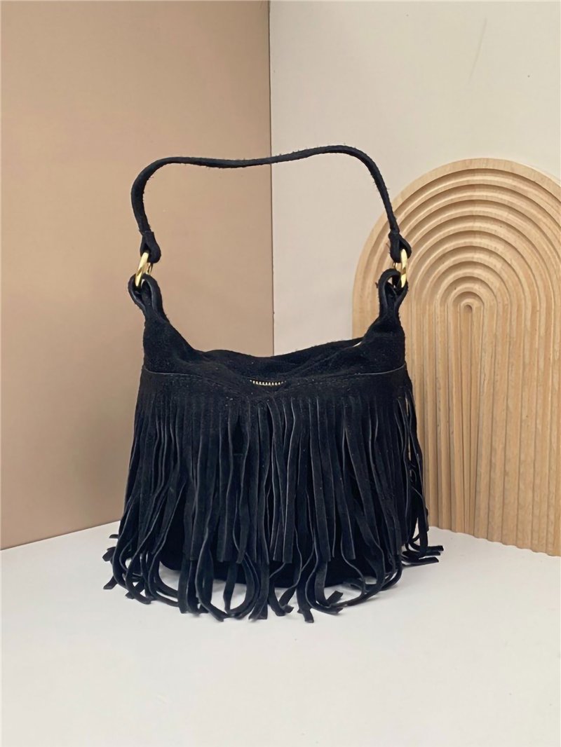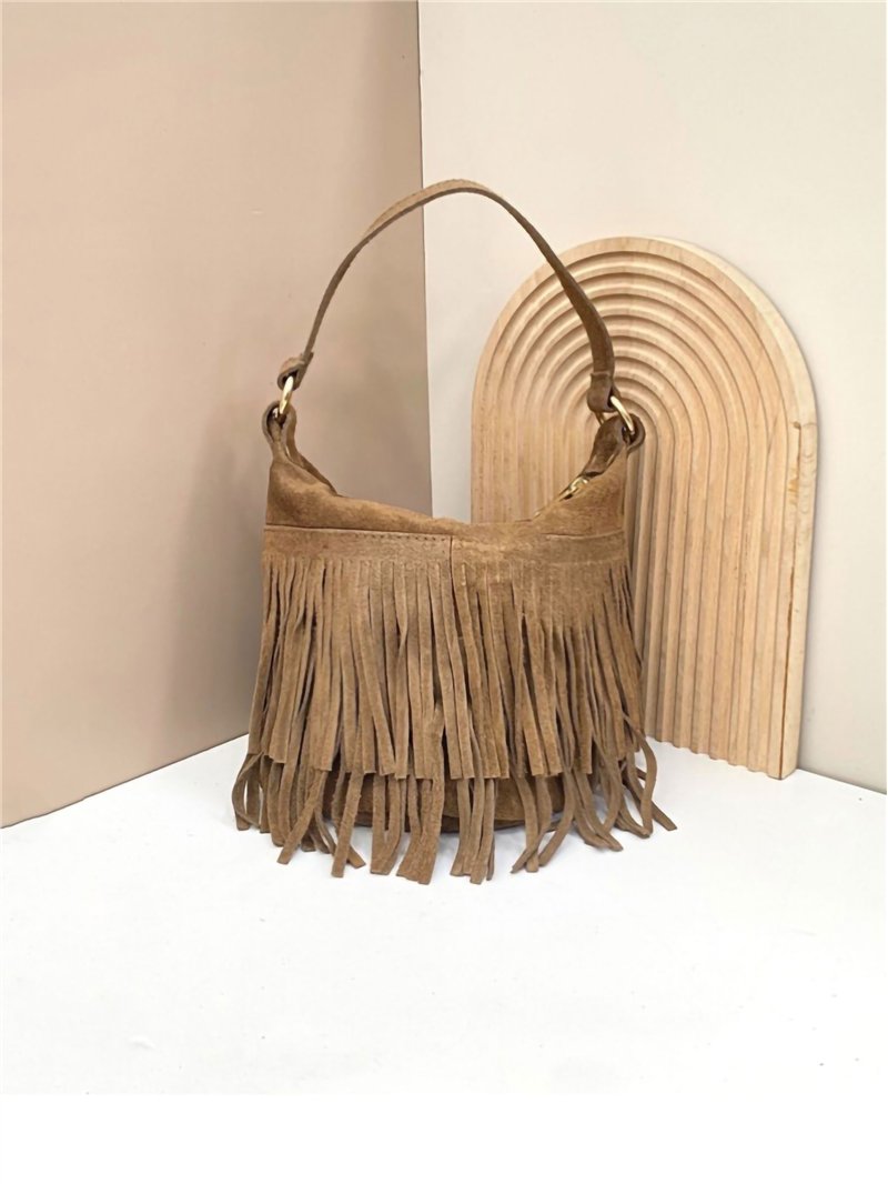 Detalles de AB-CO25029 bolso de hombro piel serraje con flecos.