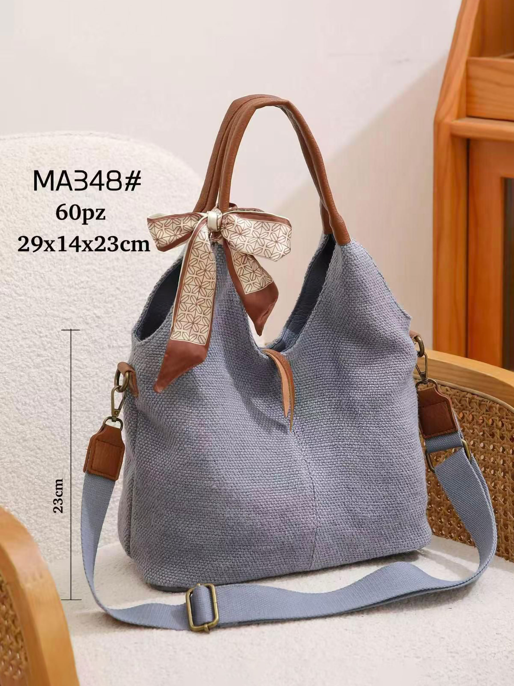 Bolso de hombro de lino con lazo decorativo Bolso de hombro de lino con lazo decorativo