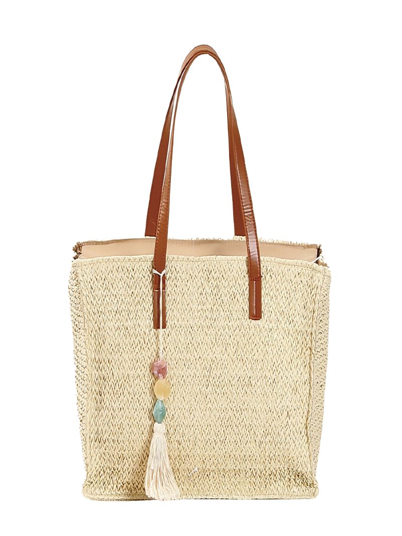 Bolso tote rectangular pequeño de rafia con borla