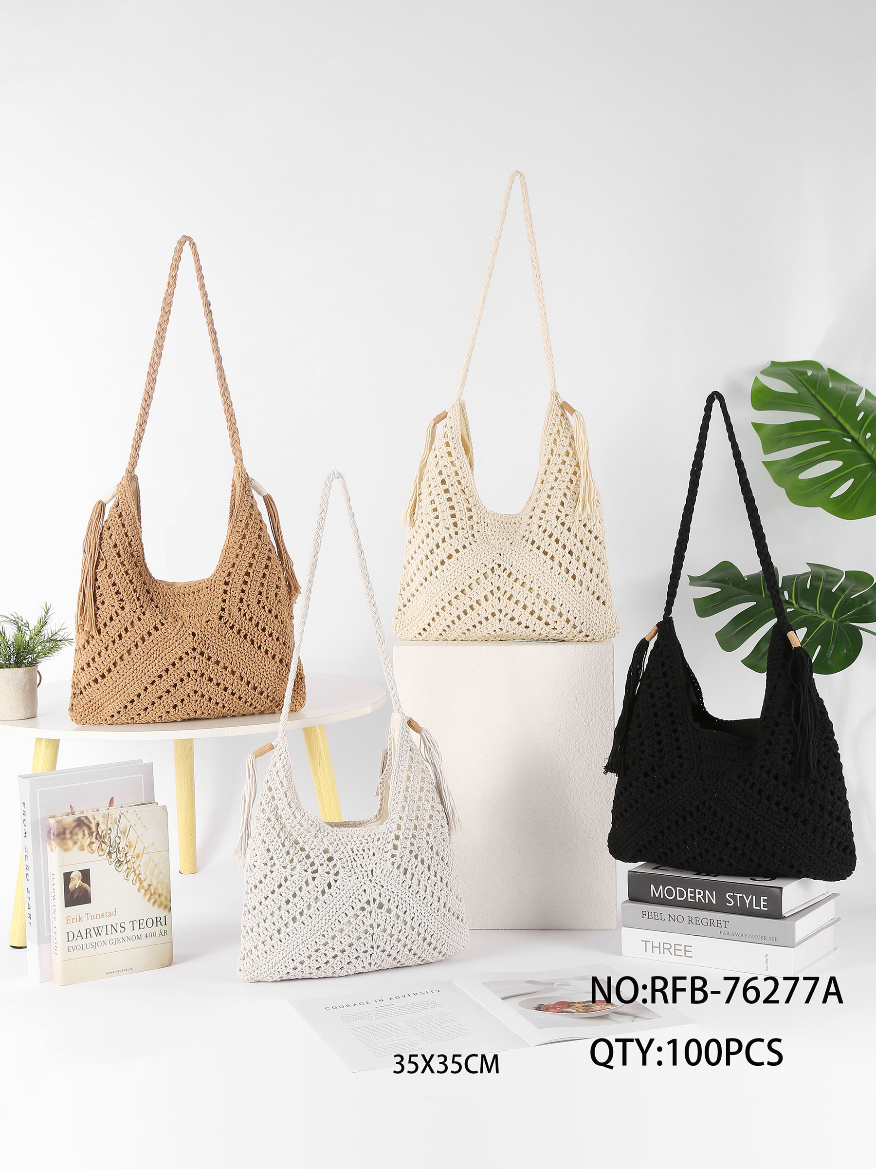 Bolso hobo de crochet con borlas laterales