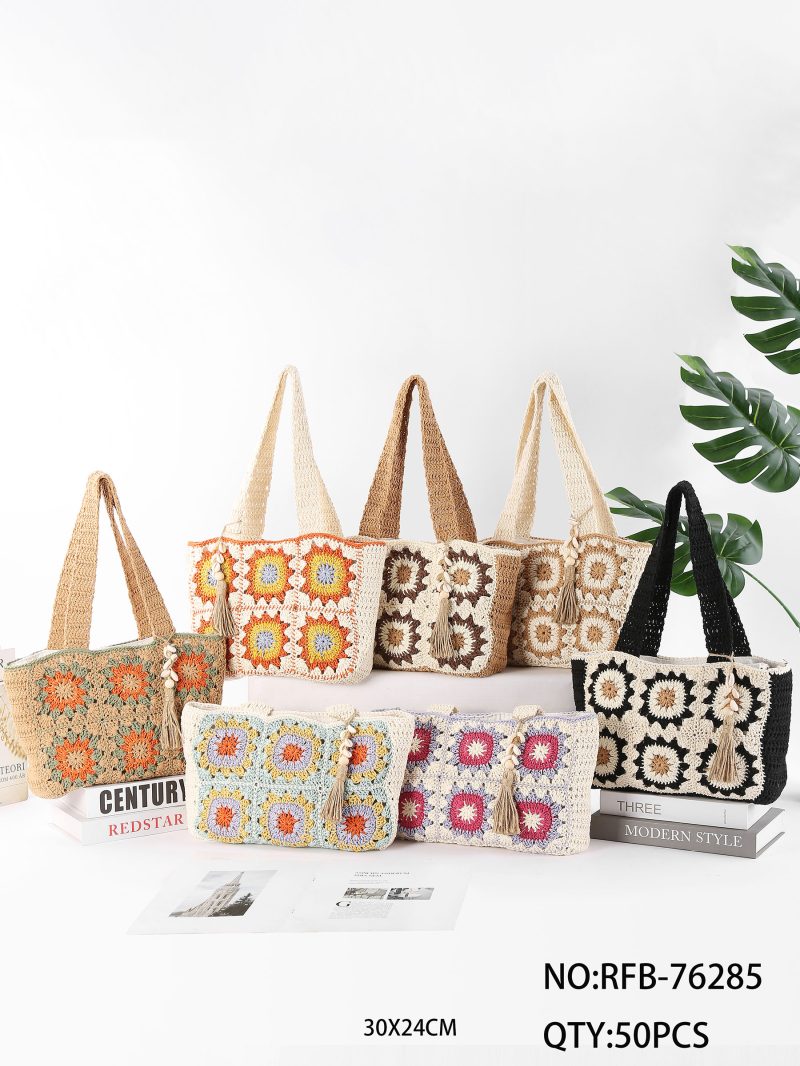 Bolso de hombro Bolso tote de rafia a rayas con borla BF-RFB-76333 Medidas: 42 x 35 x 12 cm.Colección: Primavera/Verano 2026 Ver precio