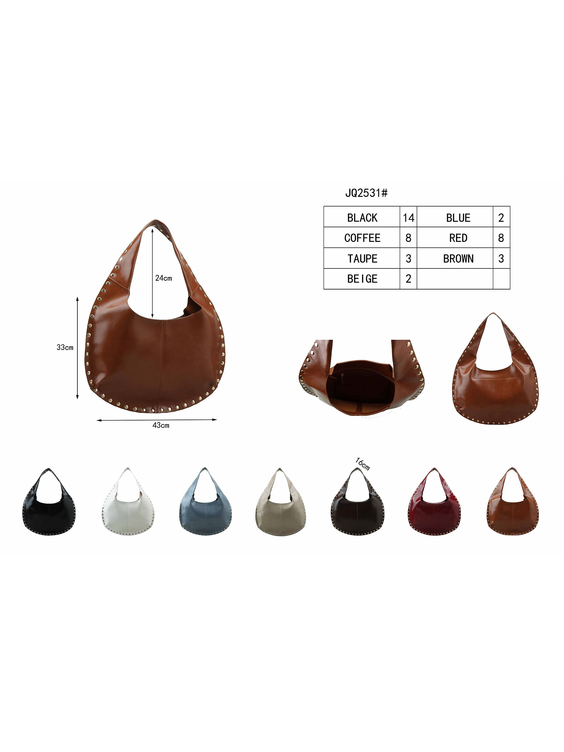 Bolso hobo grande con tachas metalizadas
