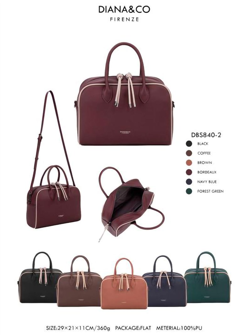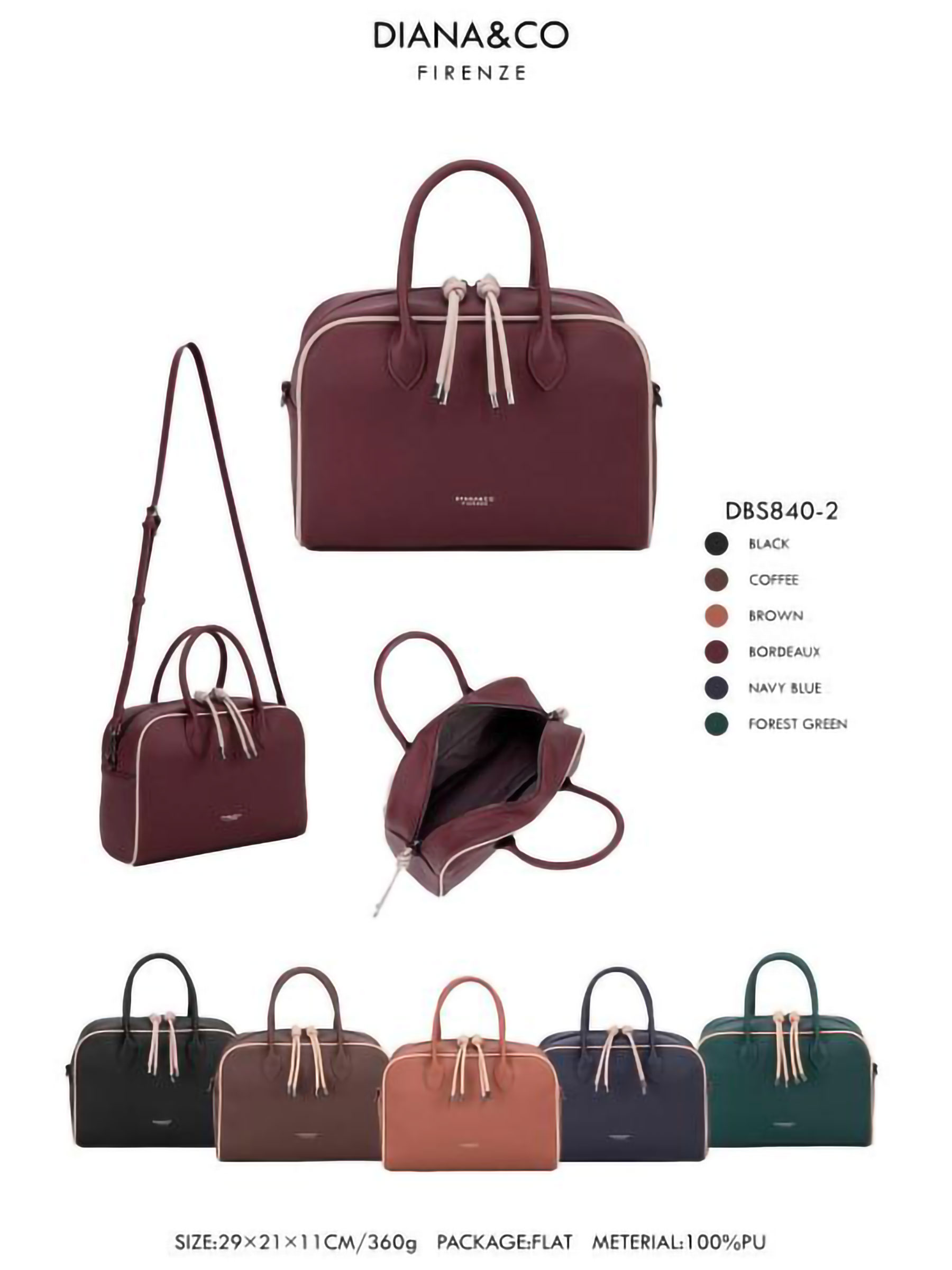 Bolso bowling contraste. Cierre de cremalleras decorativas para mujer. Dos asas cortas y una tira bandolera ajustable y extraíble. Colección Diana & Co Firenze.