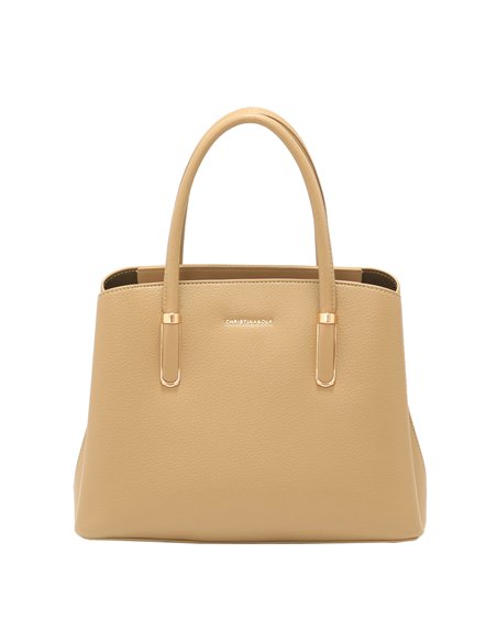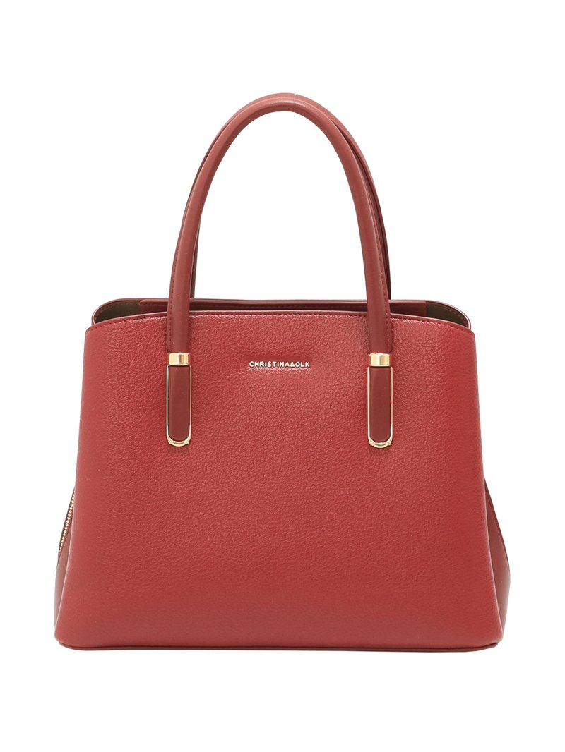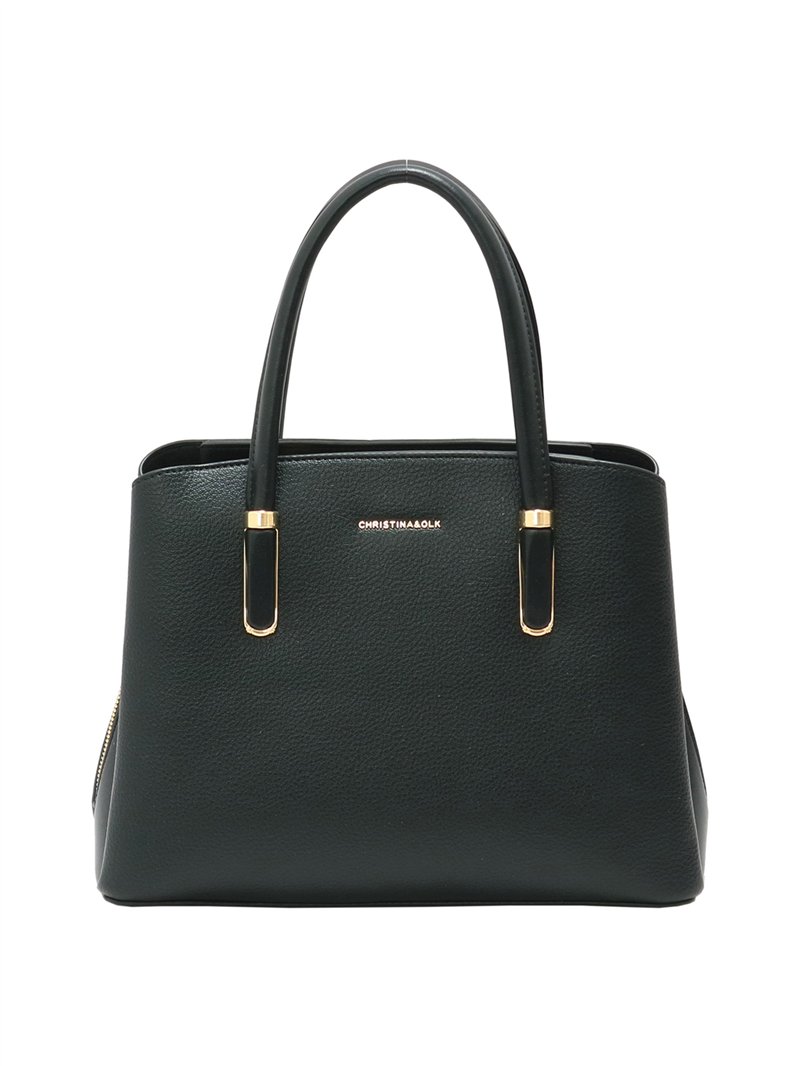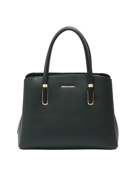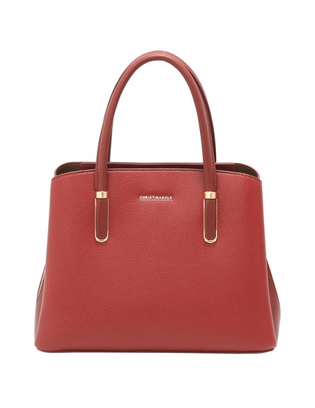 Bolso de mano. Detalle de metalería decorativa. Material polipiel. Asas de mano. Cierre mediante cremallera metálica.